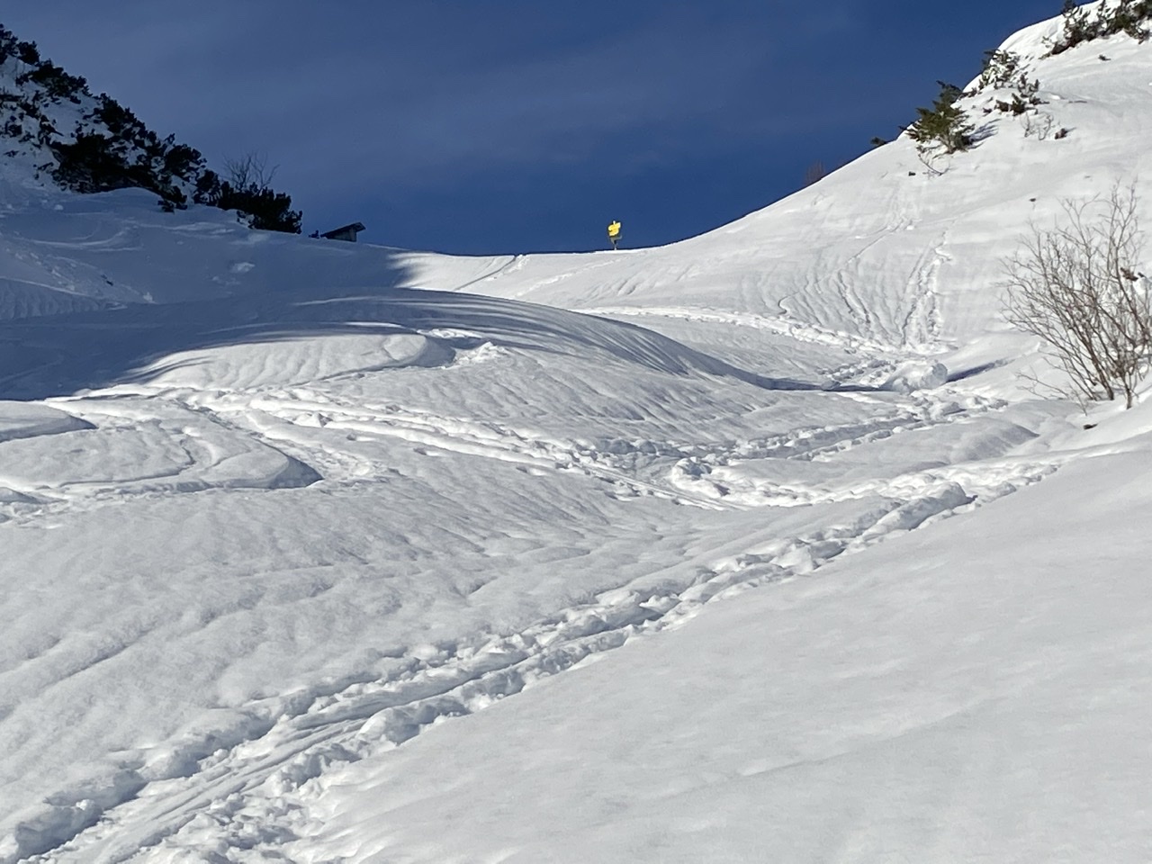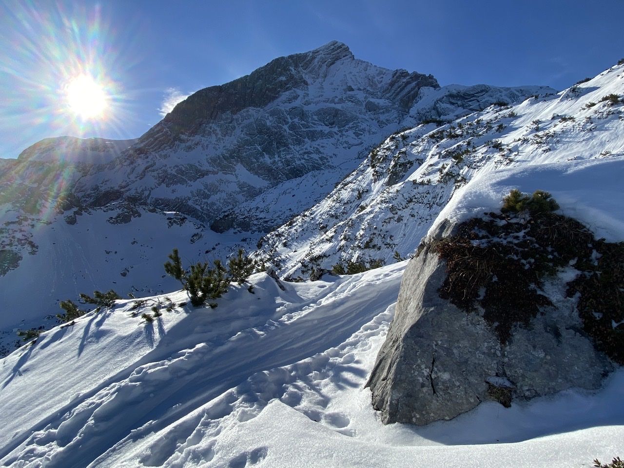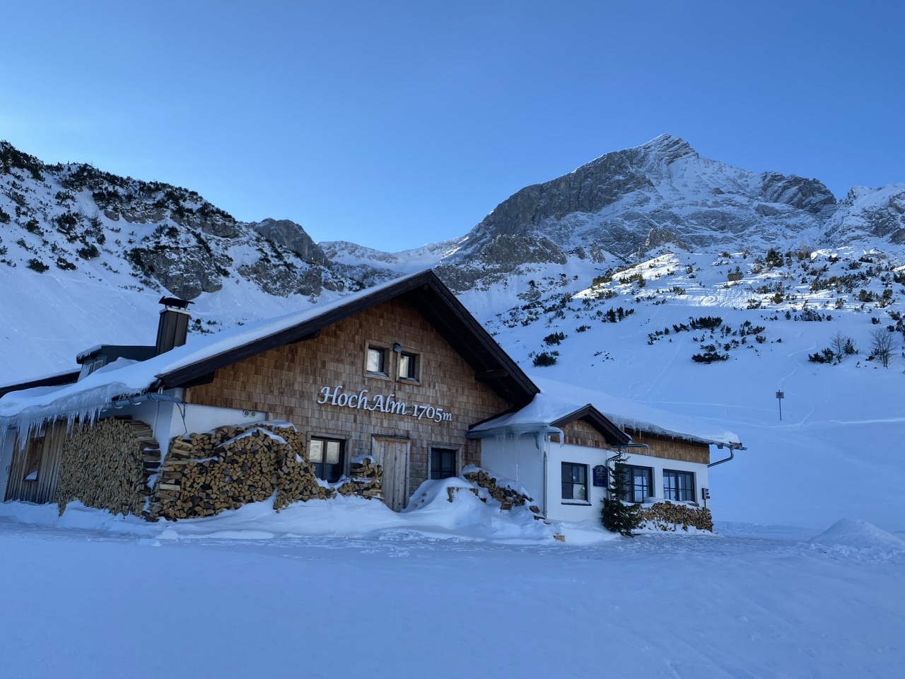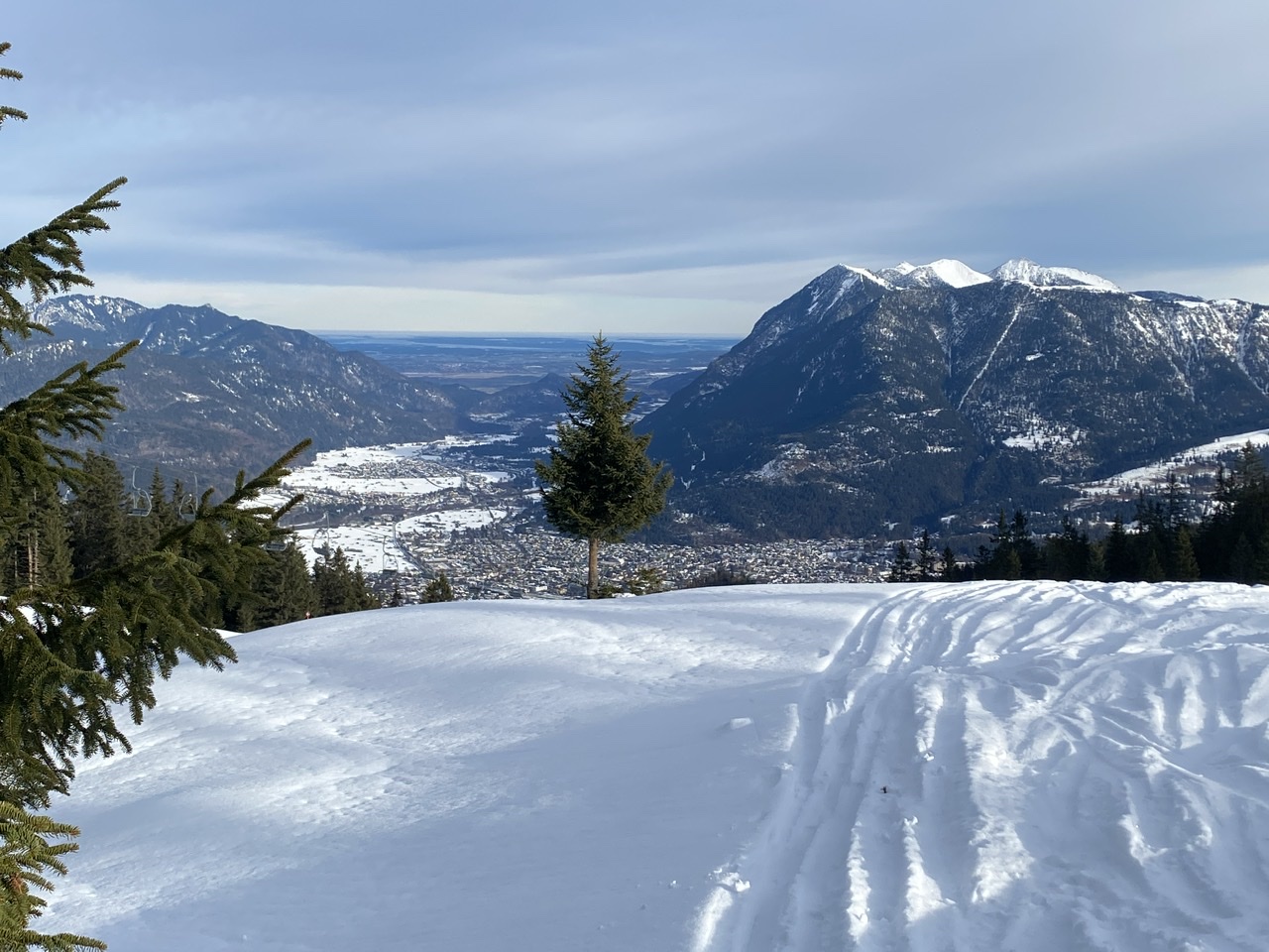 Über die Olympiapiste hinauf zum Kreuzeck und weiter zur Hochalm (bis dahin reine Pistentour), durchs freie Gelände bei stabiler Lawinenlage und guter Spur weiter zum Osterfelderkopf.