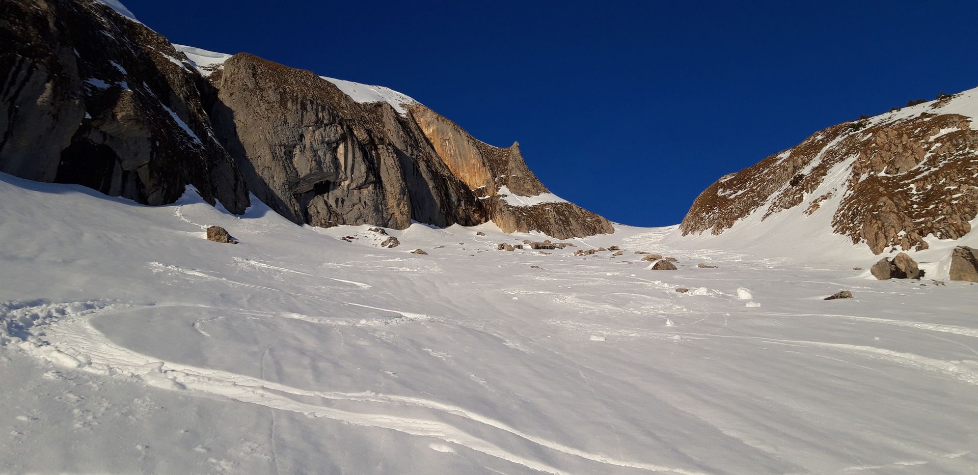 Los war im Gelände heute gar nichts. Früher am Tag sind zwei Leute vor mir auf die Seekarlspitze, aber ansonsten ist das gesamte Rofan unverspurt.