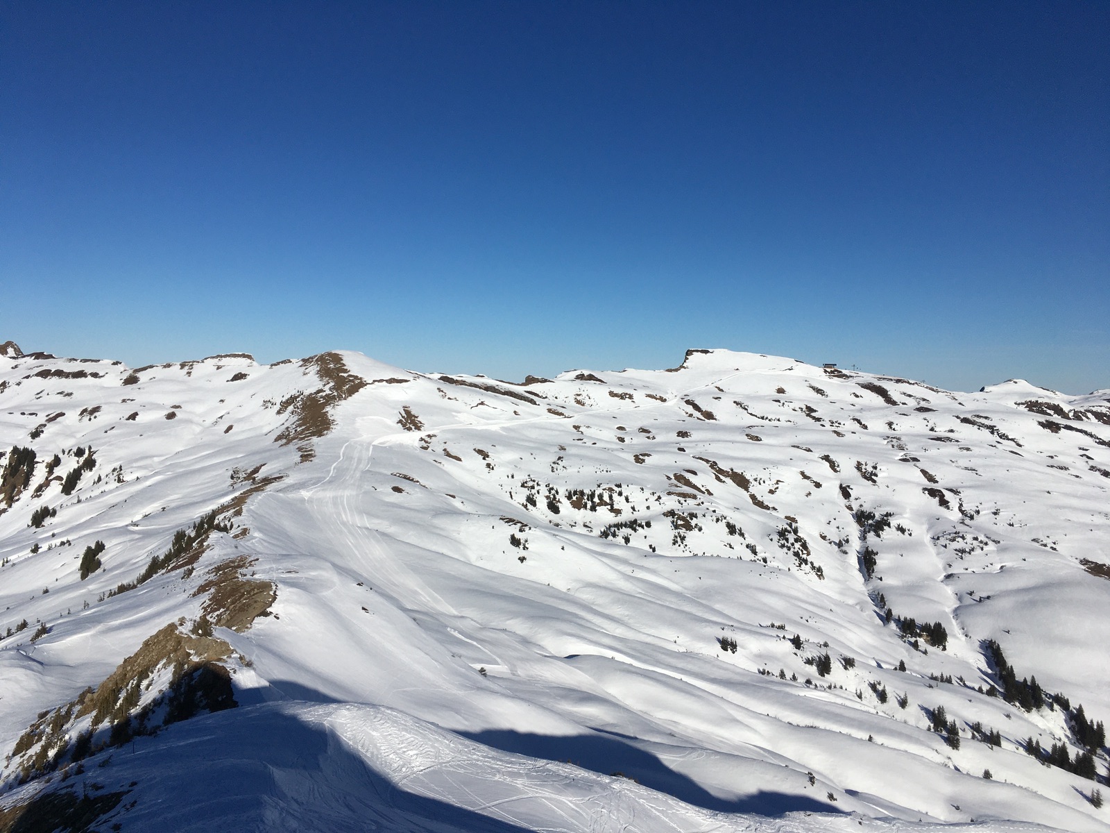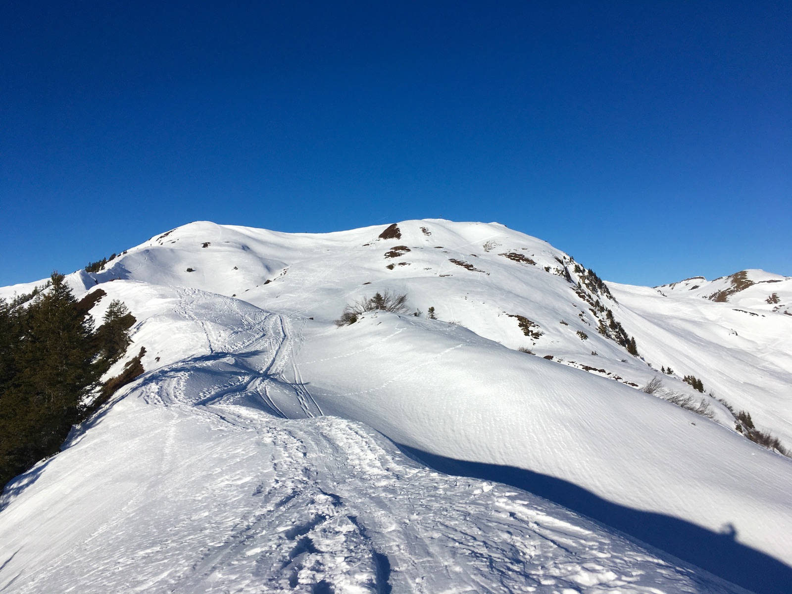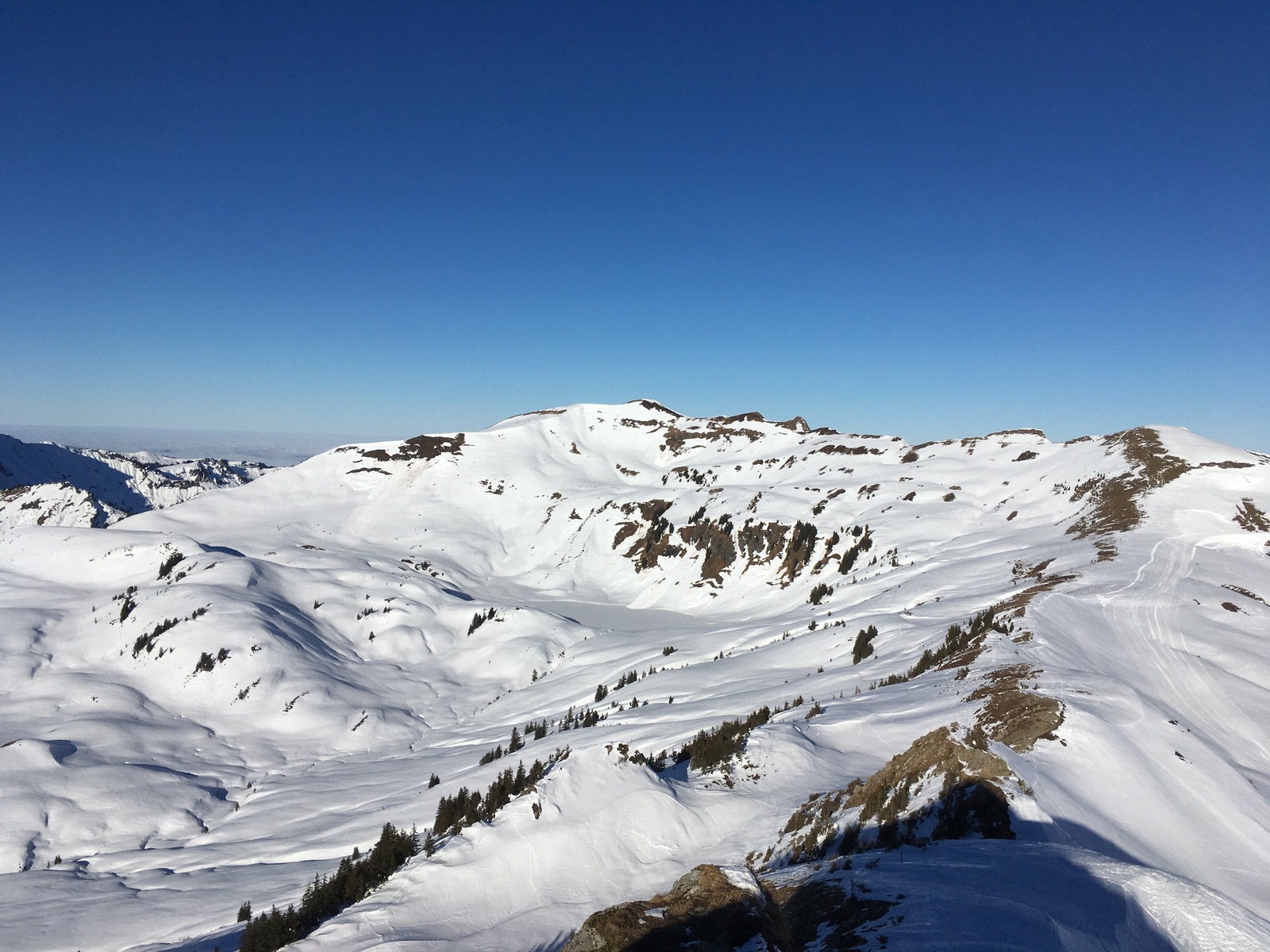 Landschaftlich toll trotz Skigebietsnähe. Und bestes Wetter. Bei der Schneebeschaffenheit erschien mir das heute genau richtig. Ein paar Stellen sind überraschend alpin gewesen ob des sonst eher sanften Geländes in Damüls.