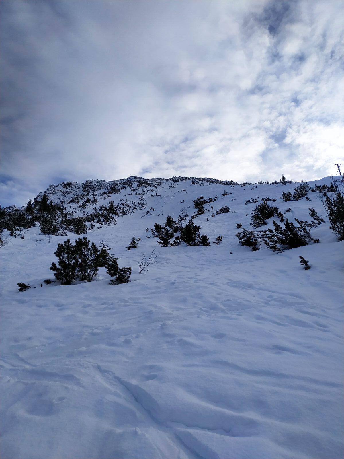 Abfahrt im Kar okay, Neuschnee natürlich zu wenig bei der ruppigen Unterlage, aber in der eingefahrenen kommt man gut runter. Piste dann eher schlechter, brachial hart, weggeschoben und voll