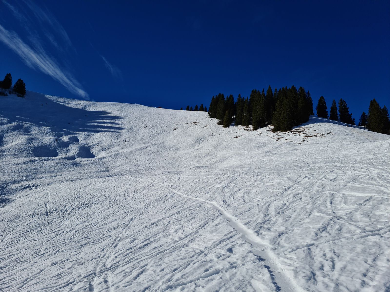 Ein dringender Appell an alle Fußgänger: Zerstört doch bitte zumindest nicht alle Skispuren! Teilweise wurden sogar Abschnitte der Piste zertrampelt. Da sehe ich großes Konfliktpotenzial, da kann man drauf warten, dass Pisten gesperrt werden. Also Pistenrand!!!!