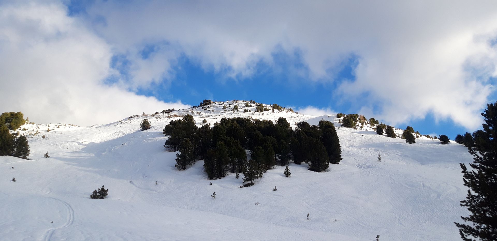 Die Tour führt zunächst über eine Rodelbahn, dank derer die schneearmen Bereiche unterhalb von 1500 Metern ohne Abschnaller überwunden werden können, zu den herrlich gelegenen Largoz-Almen und dann über Almwiesen durch lichten Zirbenwald zum Gipfel.
