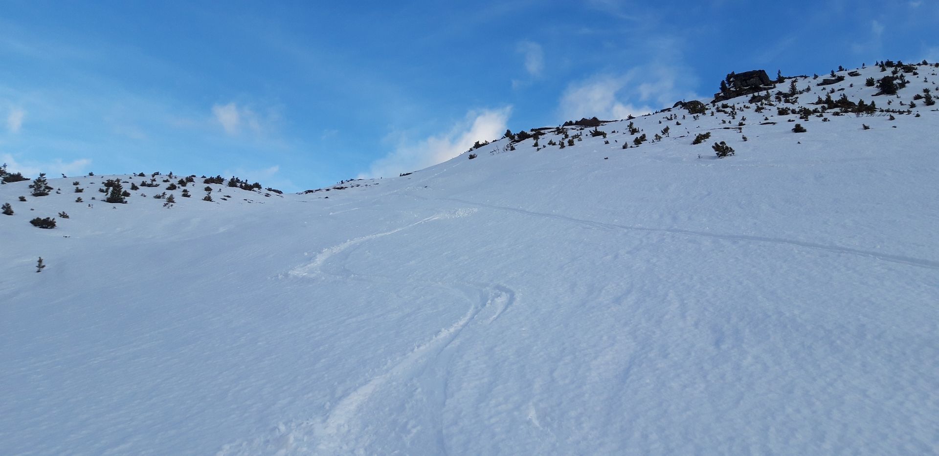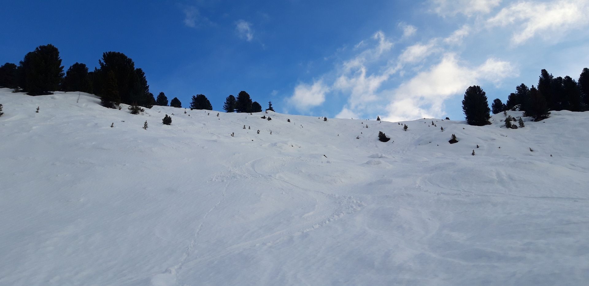 2/3: Hier kann man gut nachvollziehen, warum ich das Gelände als lawinensicher einstufe.