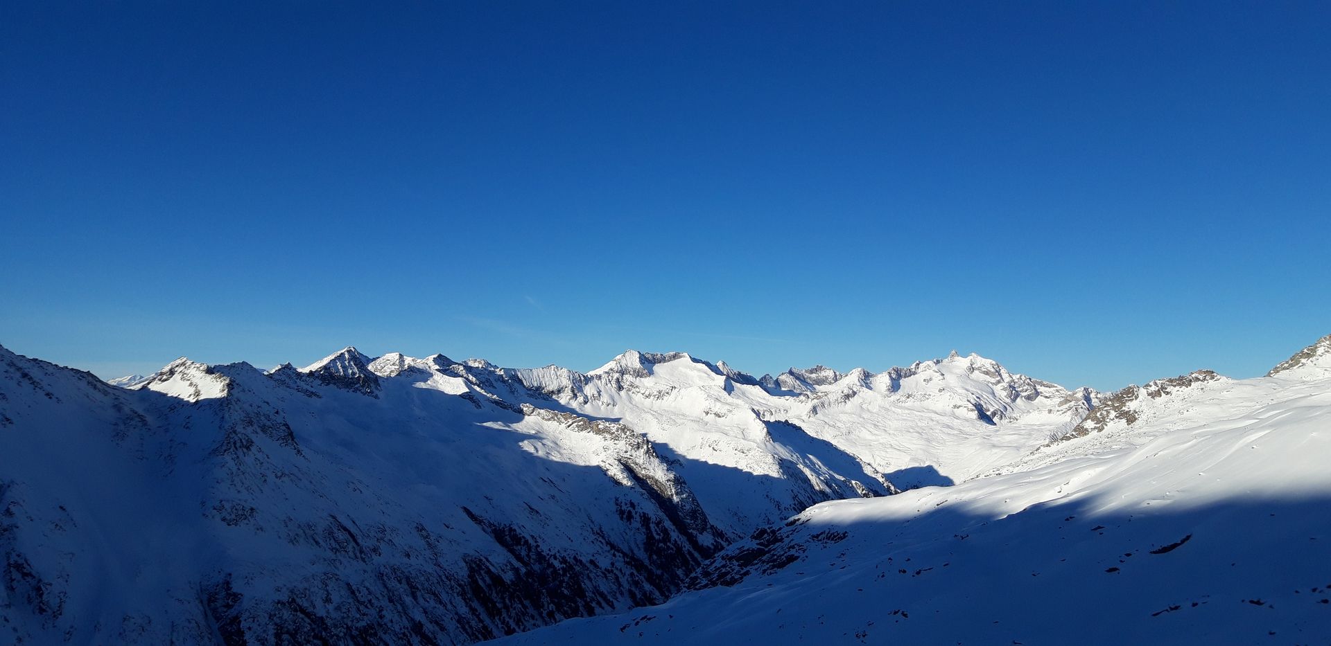 1: Um einmal die Dimensionen zu zeigen: Ganz hinten rechts der Mitte die Dreiherrenspitze - bis da hinten zieht sich das Krimmler Achental!