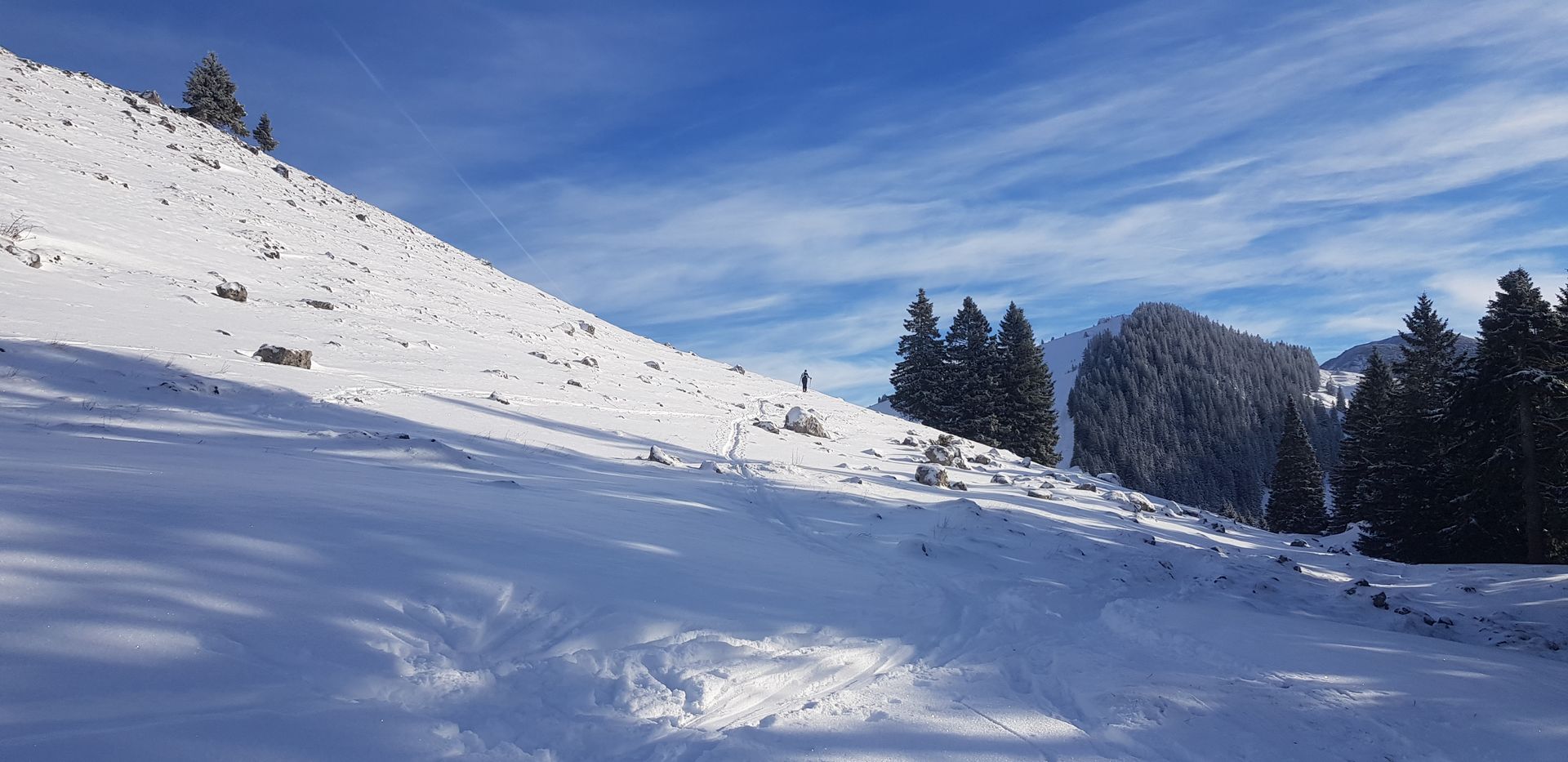 Insgesamt lohnenswert, aber wenig Schnee im Gebiet. Teilweise harte Unterlage mit Pulverauflage, dann top zu fahren.
