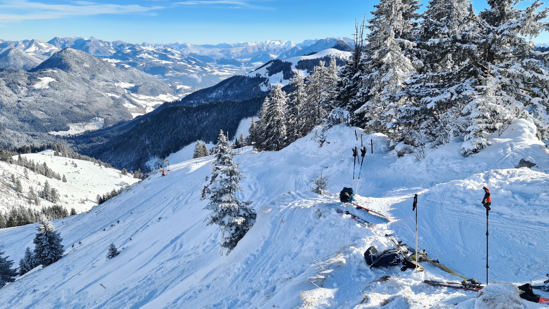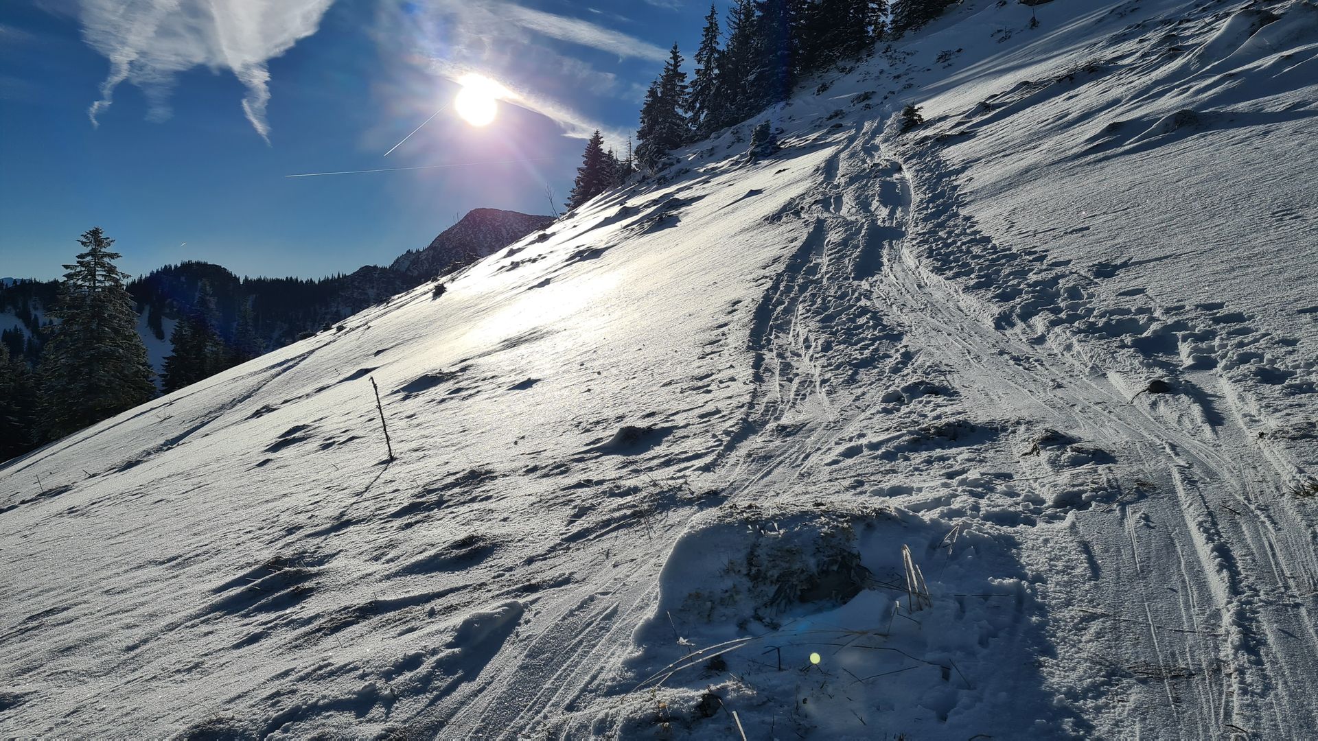 Das Schönwetterfenster musste ich einfach für eine kleine Skitour nutzen. Weil es aber danach noch in die Arbeit ging, konnte ich nicht so weit fahren, habe in den sauren Apfel gebissen und bin ins nahe Skigebiet Sudelfeld gefahren. Das hat sich heute richtig gelohnt.