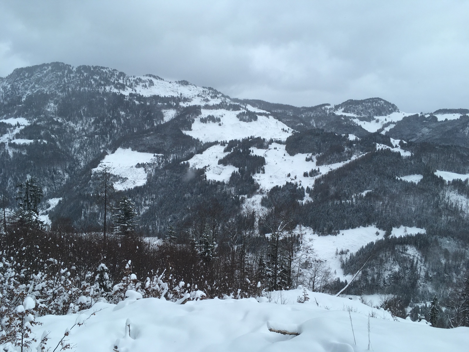 Blick hinüber zum Schnappen (auch eine Skitourenmöglichkeit) vom langen Forststraßen-Aufstieg:
