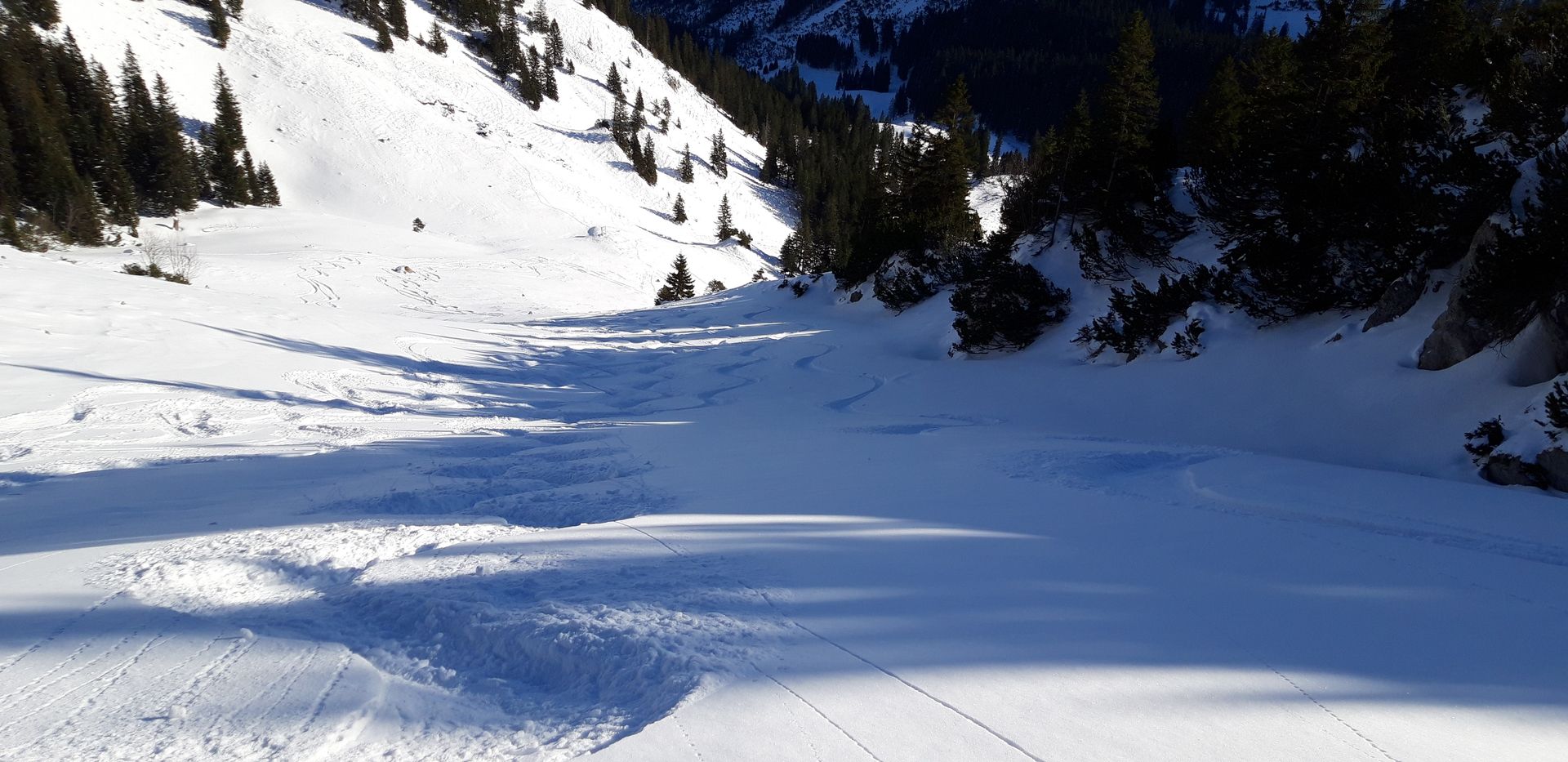 Prognose: Da es heute viel wärmer als gestern war, werden die Hänge, die viel Sonne abbekommen haben (zum Beispiel Tanzeck-Südwest), morgen früh wohl harschig sein.