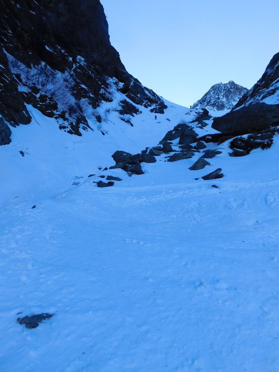Bei der ersten Zwing war außenrum so wenig Schnee, dass man den Sommerweg rechts davon aufsteigen konnte. Nach der Abfahrt durch die Zwing würde ich sagen, dass sich der Umweg beim Aufstieg lohnt (bei der Abfahrt nicht).