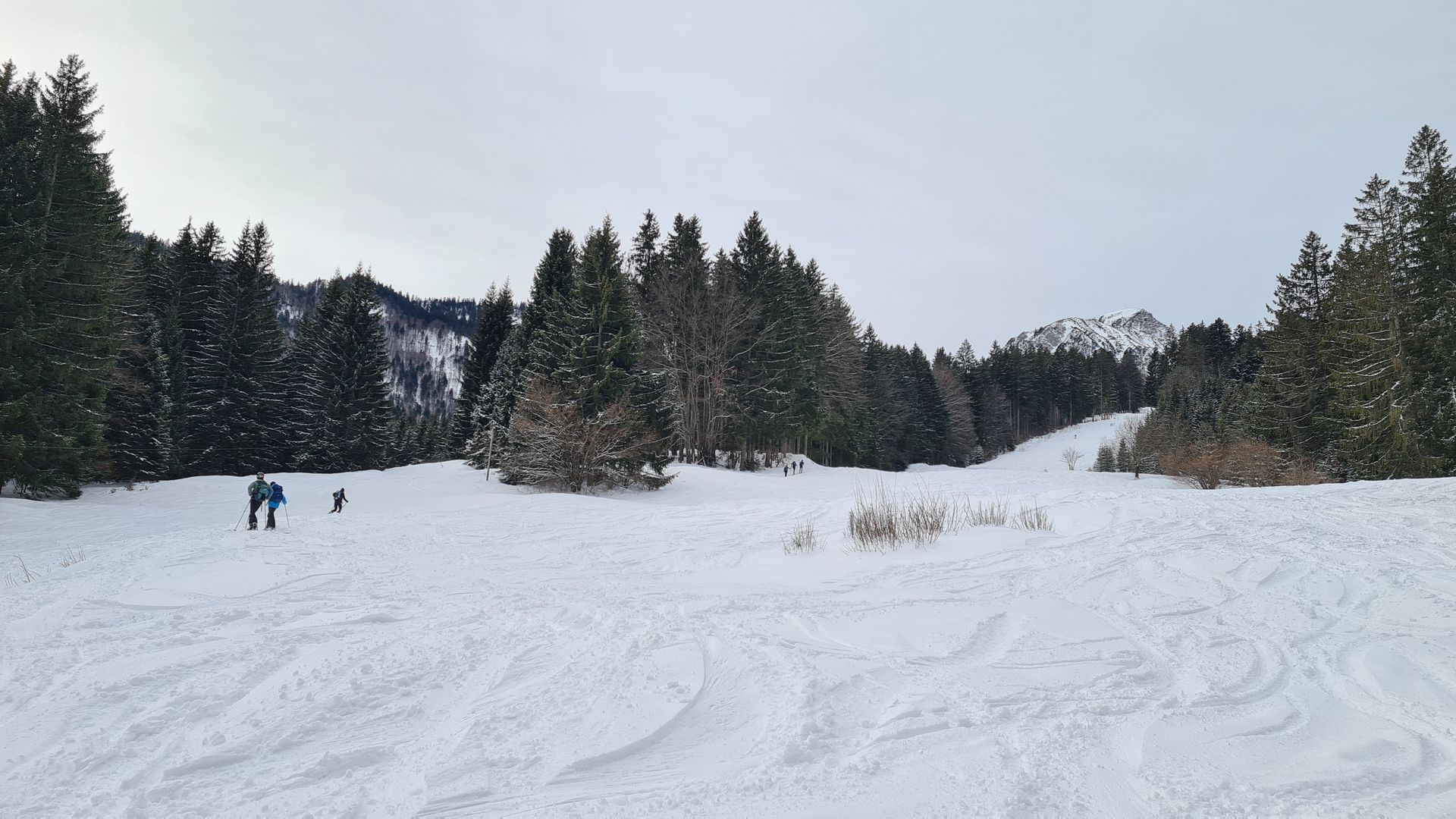 Bis zur Wuhrsteinalm hat's auch richtig Spaß gemacht, obwohl ab und zu ein abrupter Wechsel zwischen Pulver und verfestigtem Harsch ein wenig die Fahrkünste herausforderte. Im untersten Teil war dann der Schnee zwar sehr zerpflügt und wurde mit dem Höhenverlust etwas pappiger, aber trotzdem gut zu fahren.