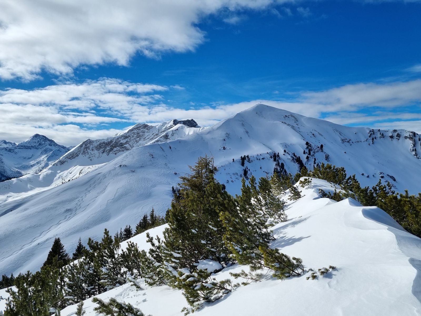 Auf die hintere Steinkarspitze gab es übrigens auch neue Spuren heute. Da große Teile des Wegs im schattigen Tal verlaufen, ist das vielleicht gar keine schlechte Alternative - wenn man von der Lawinengefahr im Gipfelhang (siehe Foto unten, der lange schmale Hang im Mittelgrund) einmal absieht.