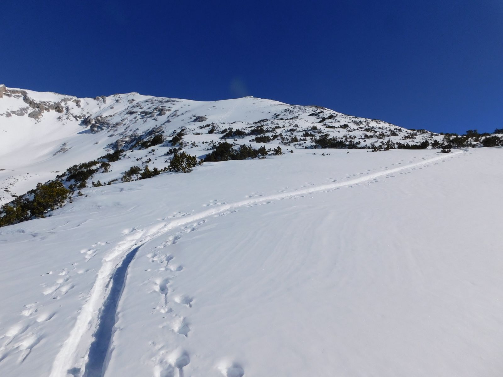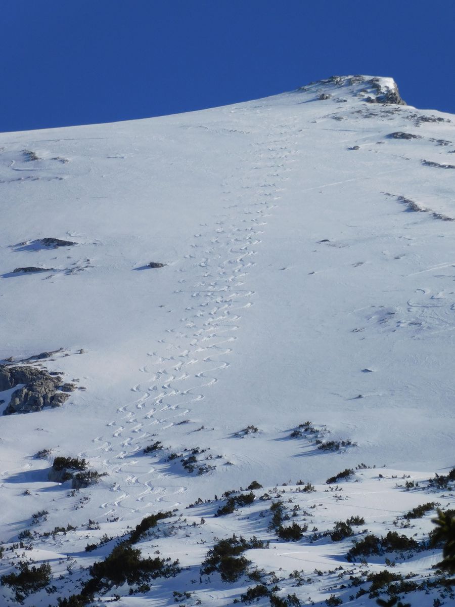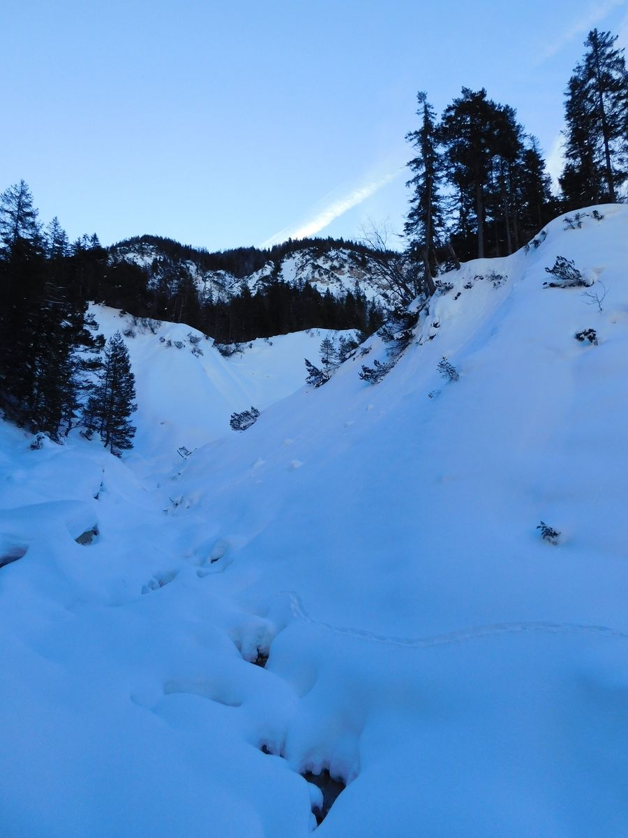 Wir sind früh gestartet (um 7:45 am Parkplatz Karwendeltäler), dementsprechend waren die Abkürzungen beim Forstweg noch relativ eisig. Es war aber meistens eine gute Spur vorhanden (vermutlich von gestern) - danke dafür!