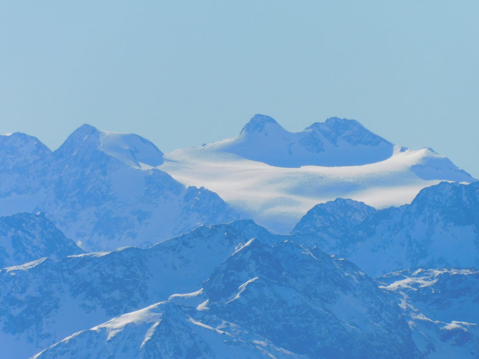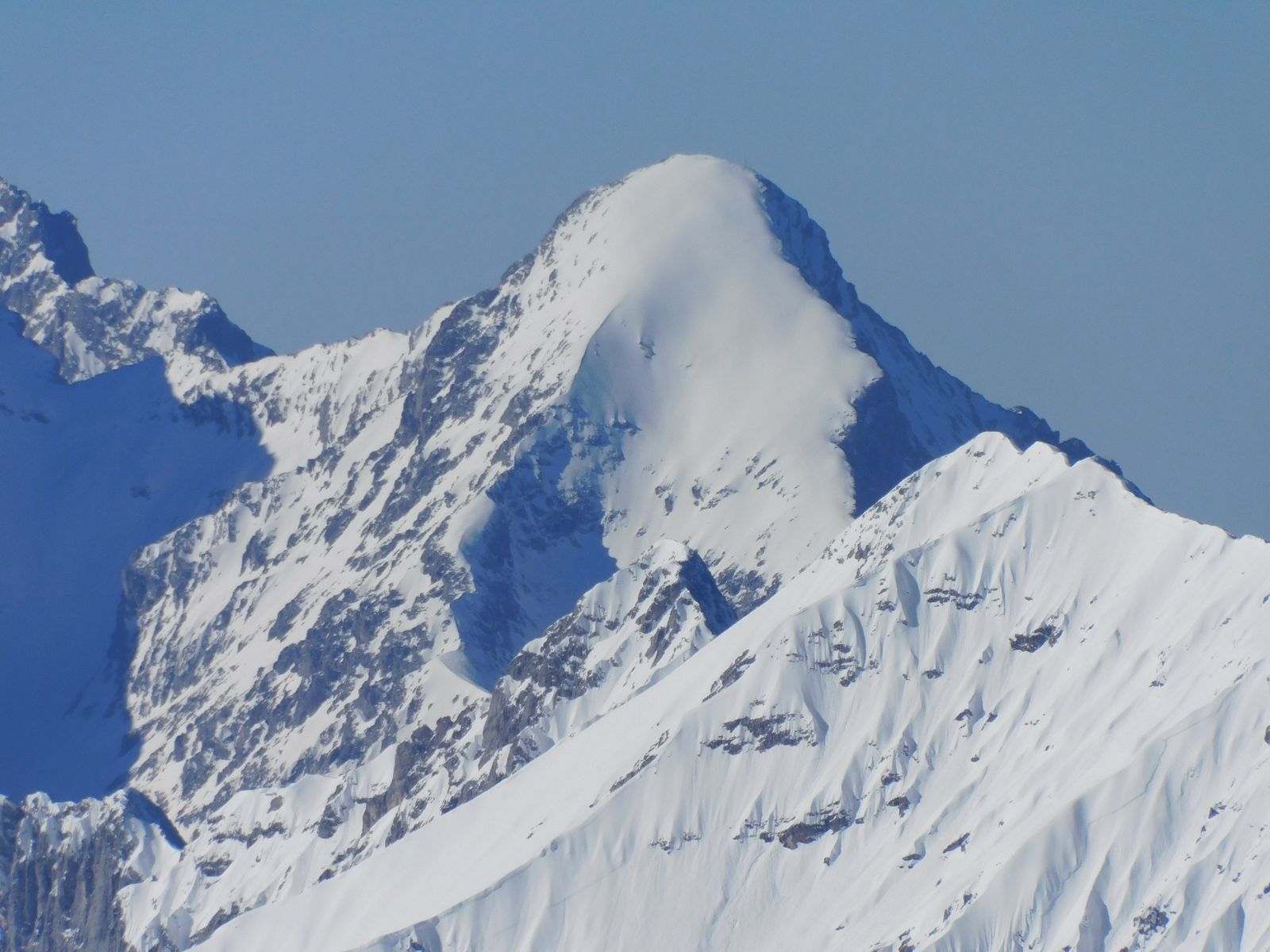 Zoom von der Pleisenhütte zum schönen Firnhang (heute der beste Teil der Abfahrt - Spuren wahrscheinlich von gestern):