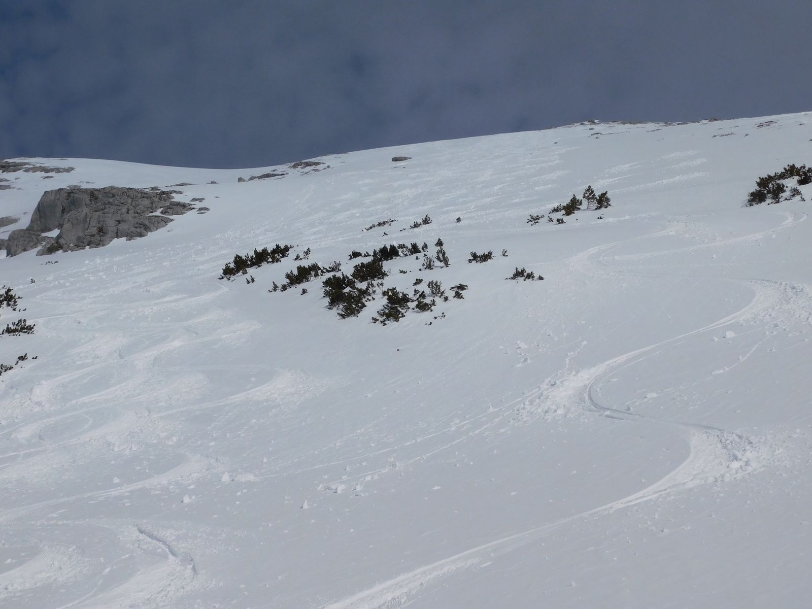 Oben hatten wir ein Traumwetter, und wir haben auch einen guten Zeitpunkt für die schönen Firnhänge erwischt! Nur kurz vor der Pleisenhütte wurde der Schnee schon schwerer, aber es ging noch gut. Auch die weitere Abfahrt nach der Pleisenhütte war ok! Immerhin konnte man fast bis zur Straße abfahren.