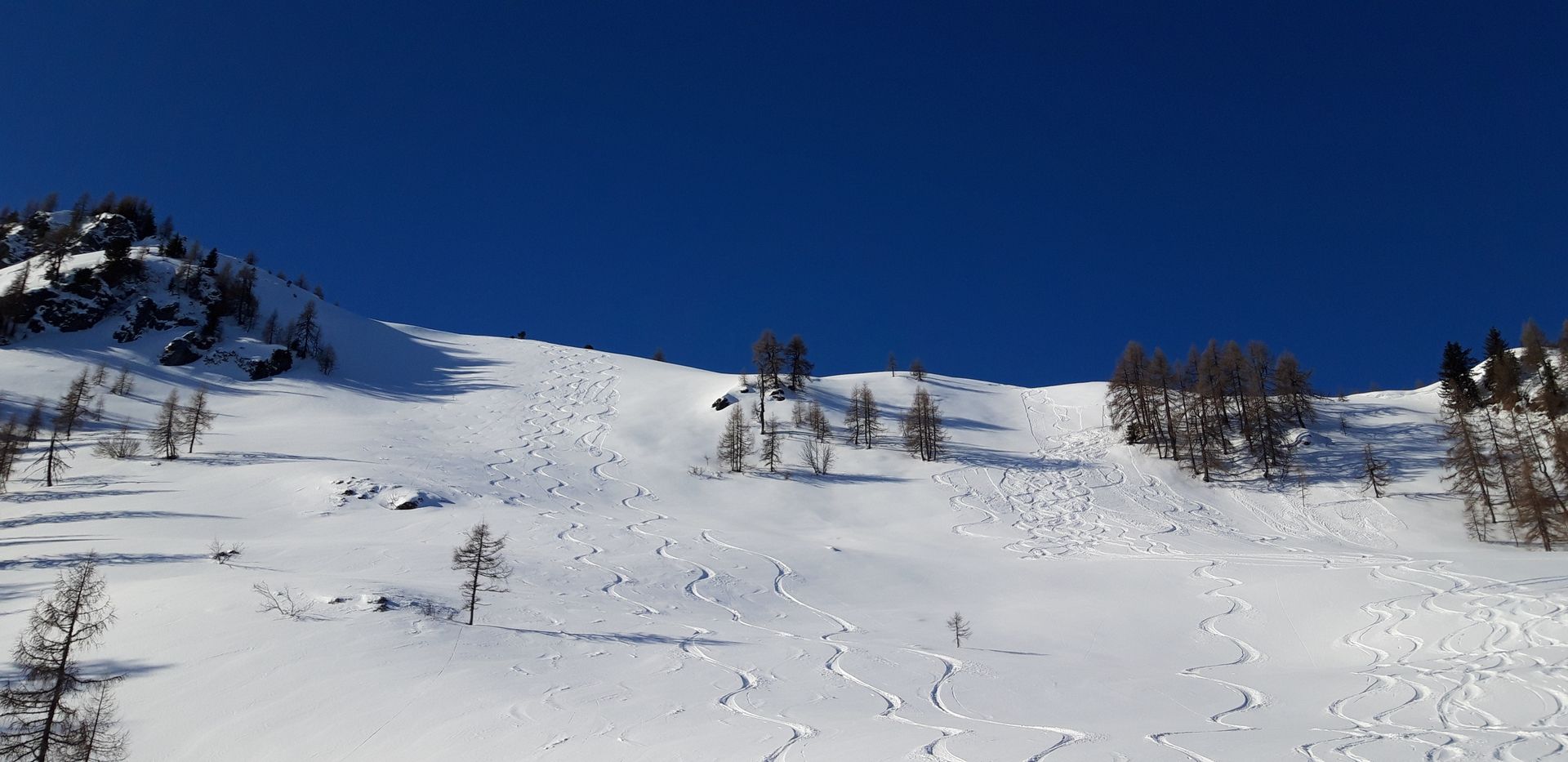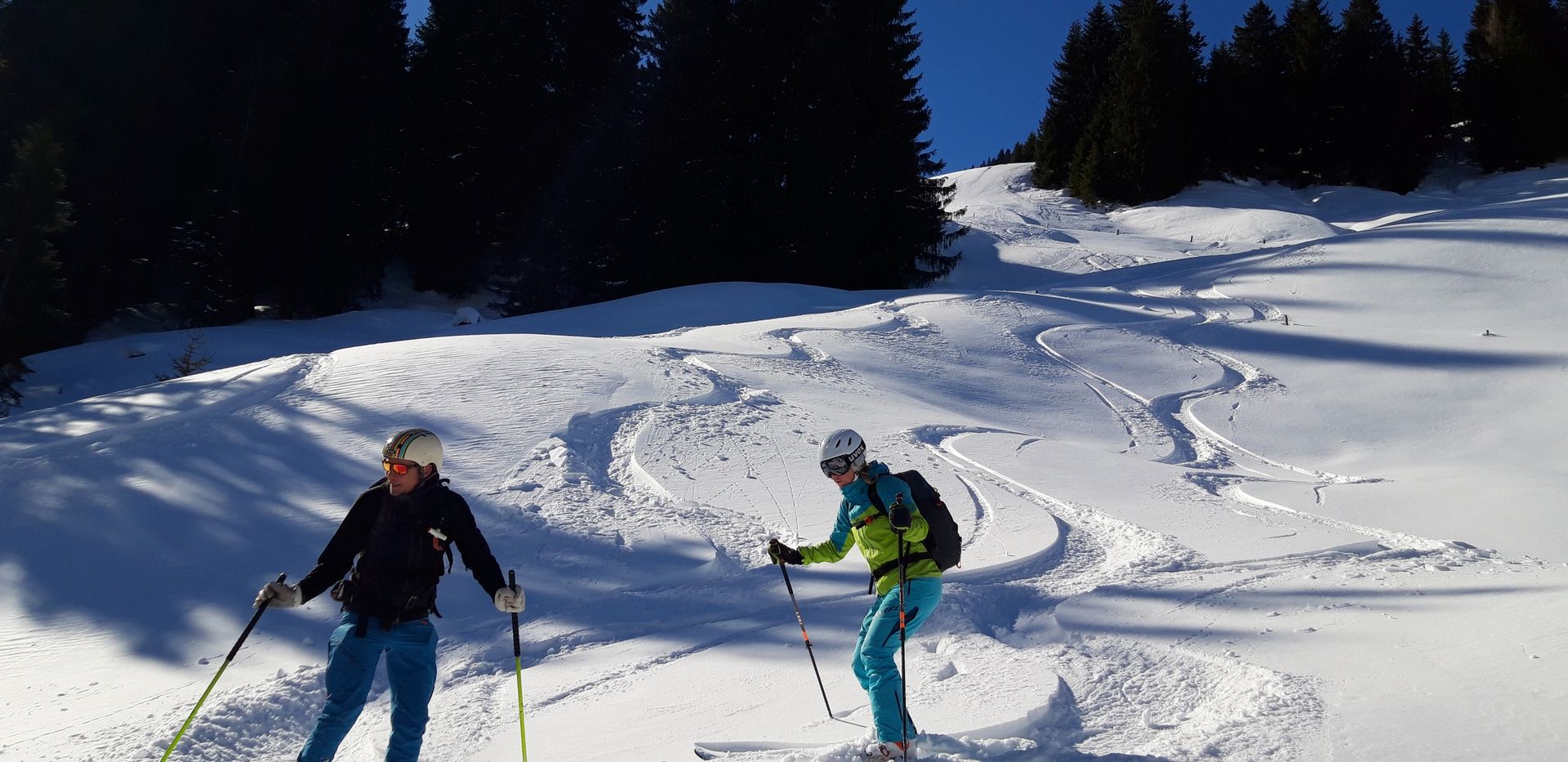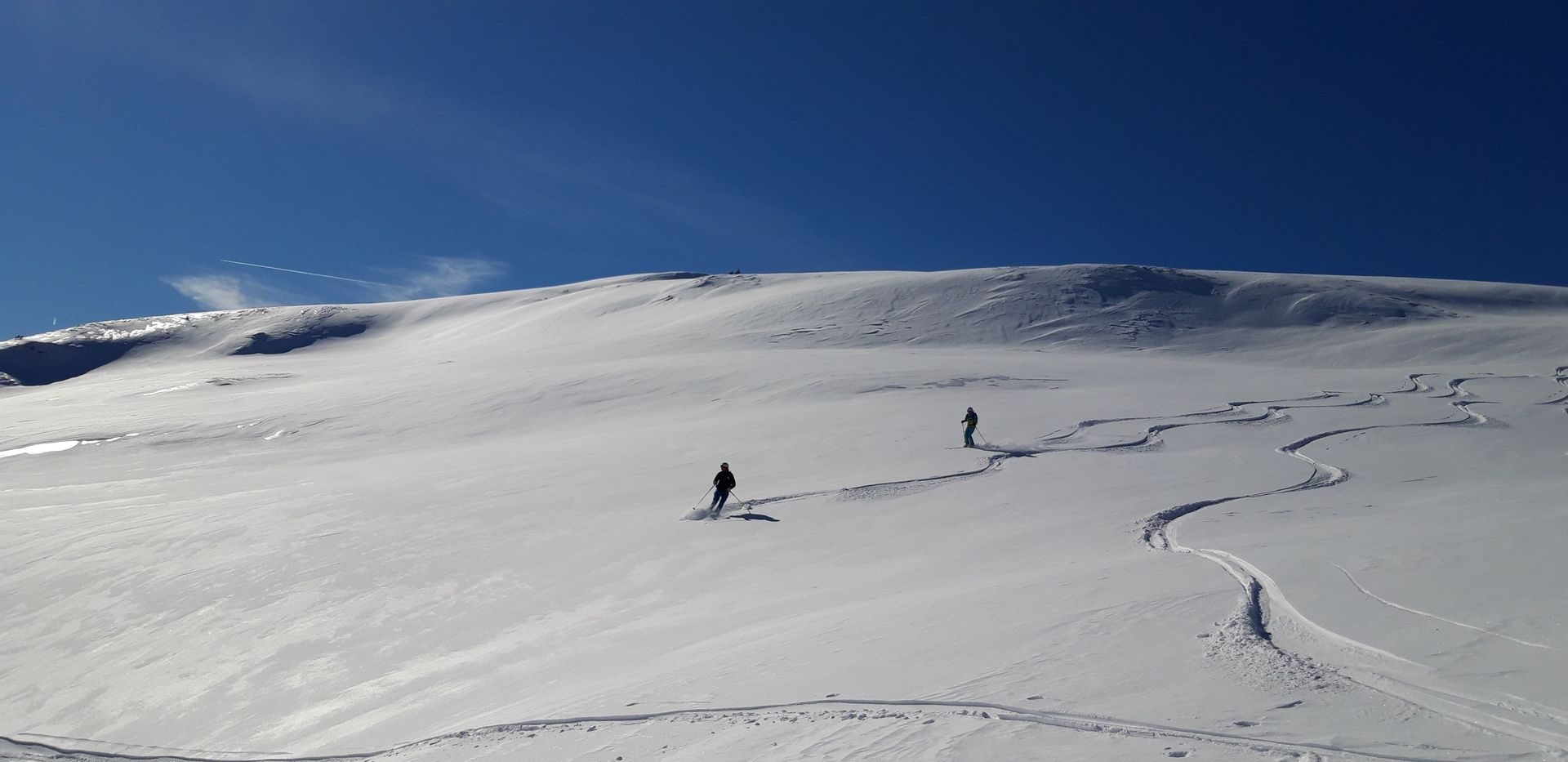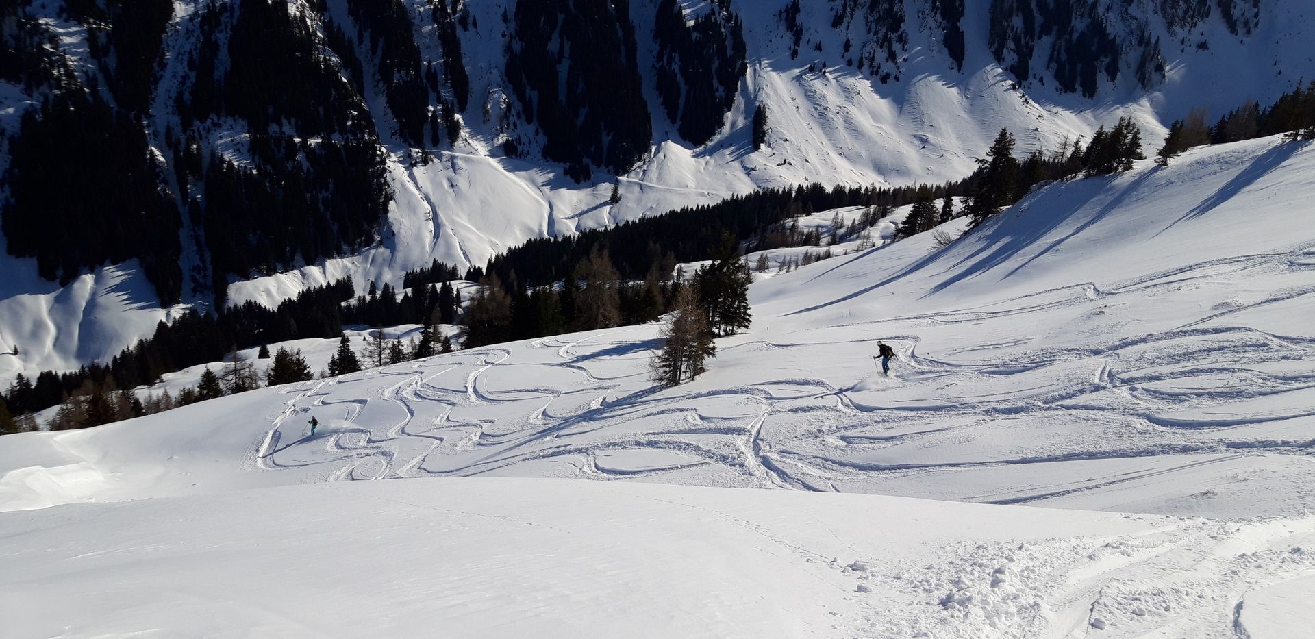 Jede Abfahrt war durchgehend pulvrig. Die Option, auch den Roßgruberkogel zu besteigen, verwarfen wir, da dieser sehr stark abgeblasen ist.