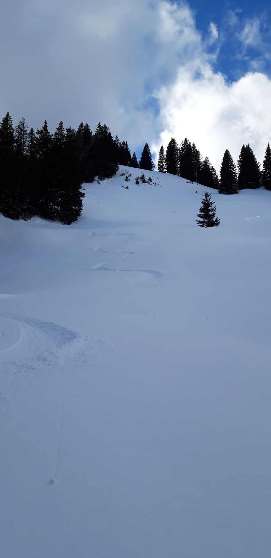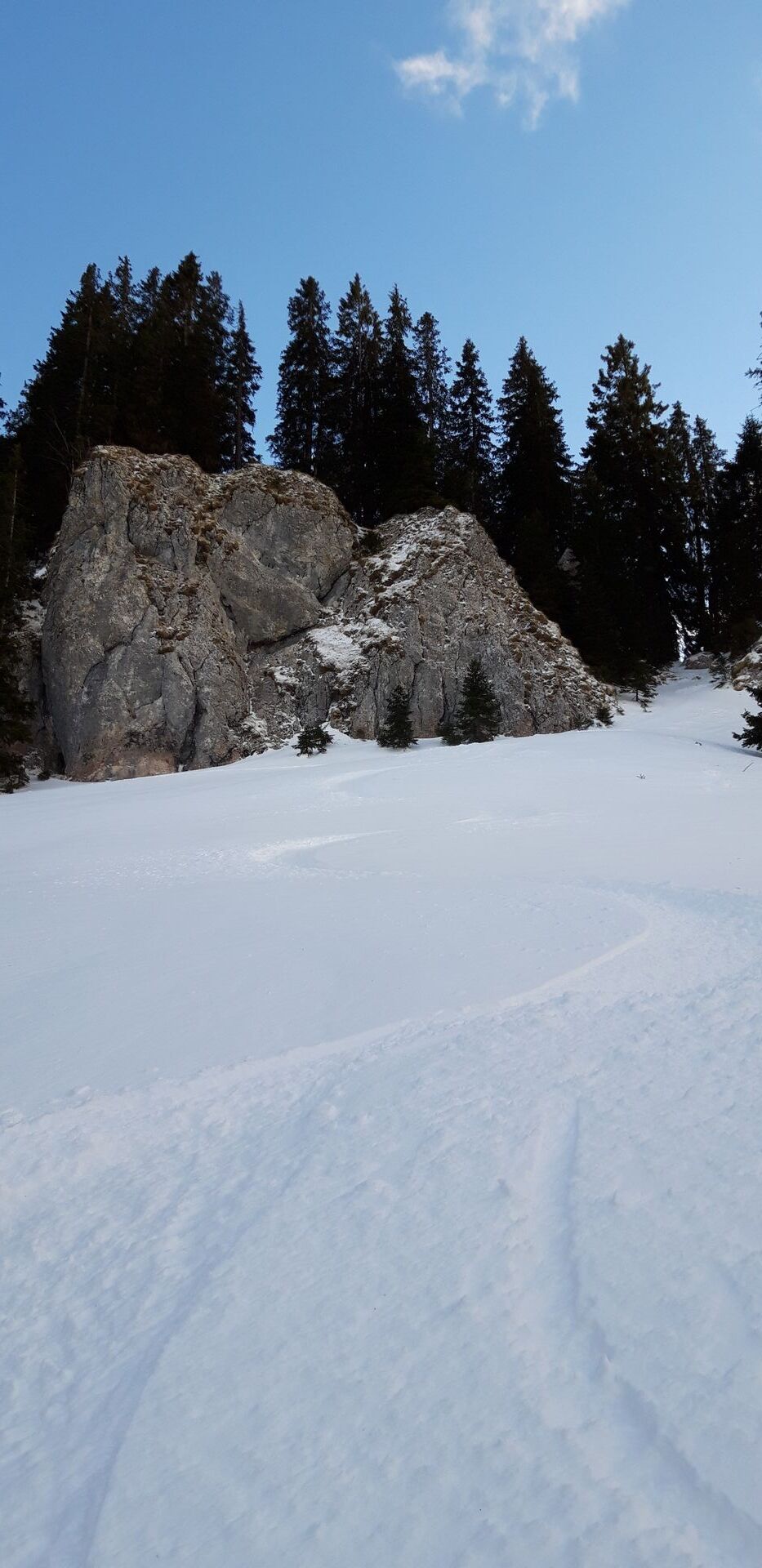 Hinweise: Wenn keine Spur vorhanden ist, kann es oberhalb der Haushamer Almen für nicht Gebietskundige etwas schwierig sein, die richtigen Durchgänge im Wald zu finden. Den "Gipfel" (,wenn man die baumbestandene Wiese da oben so nennen will,) erreicht man mit Skiern übrigens, indem man dort, wo der Sommerweg durch die Felsen geht, eine Linksschleife vollzieht und dann durch recht engen Baumbestand aufsteigt. Oder man schnallt ab und steigt ein paar Meter zu Fuß hoch.