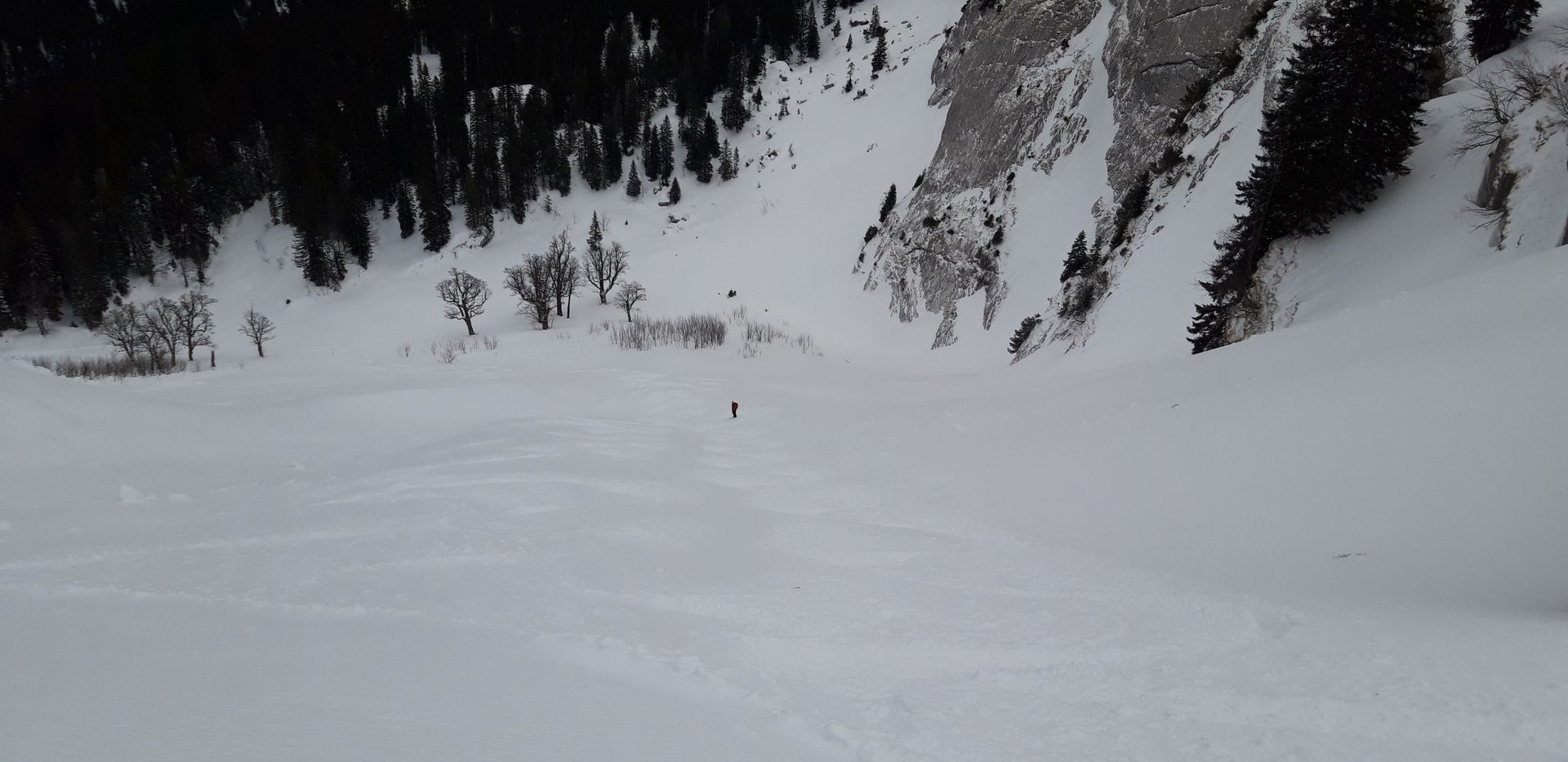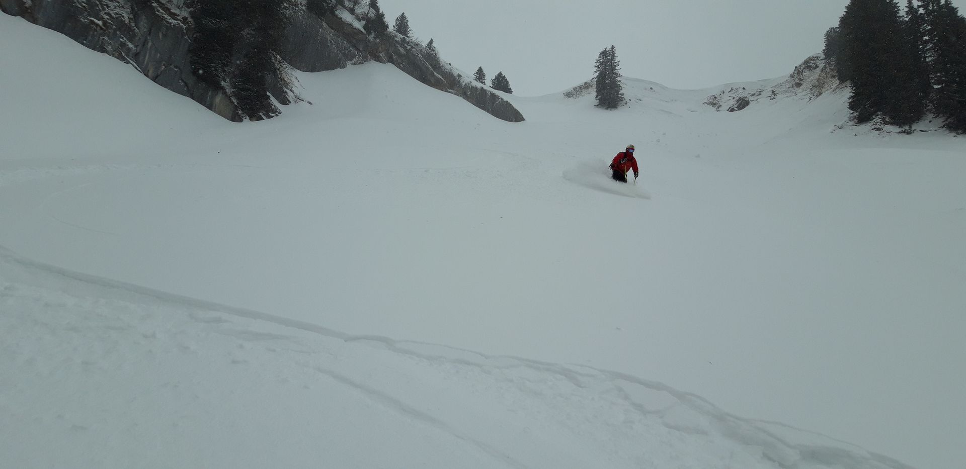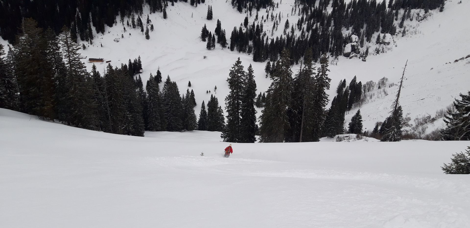 Röthenstein-Ost ("Obstgarten"): Sensationeller Pulver! Die steile Einfahrt war aber einigermaßen abgeblasen, sodass hier keine Lawinengefahr bestand.