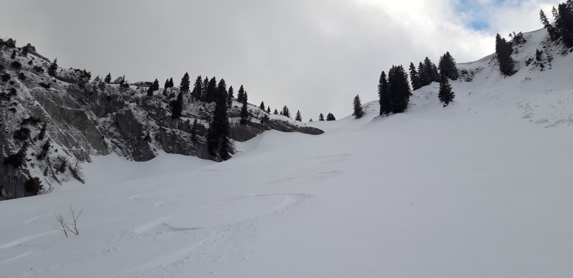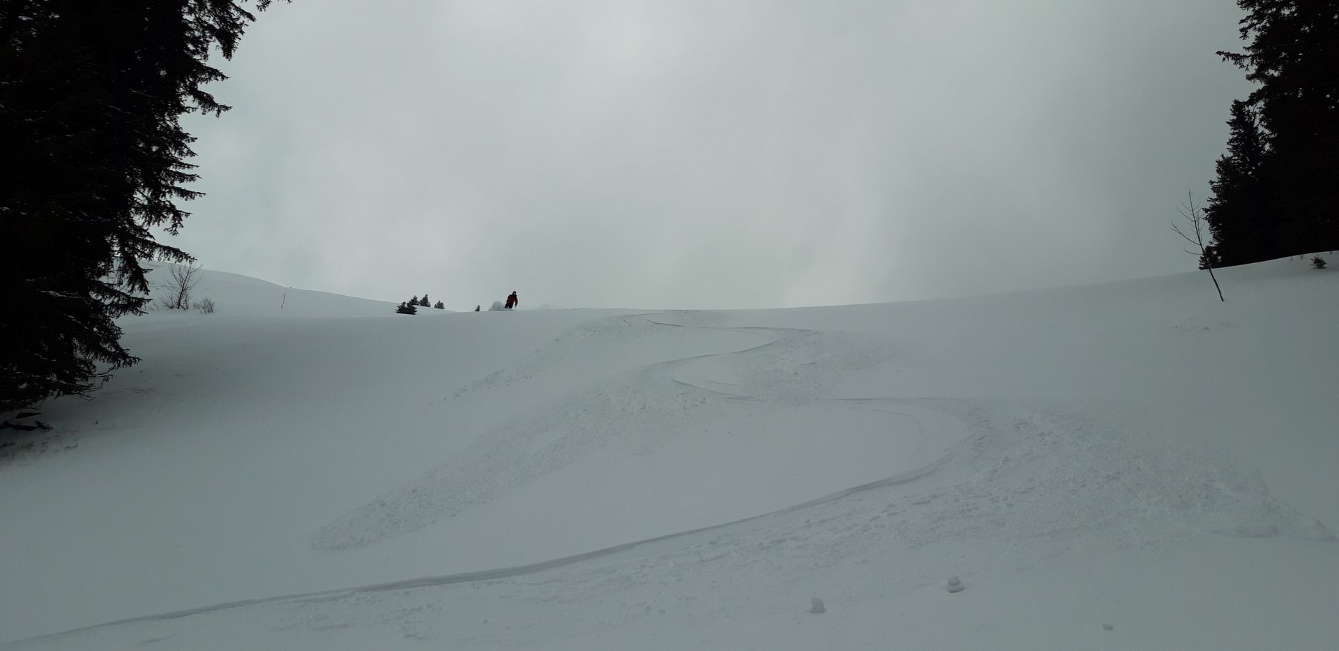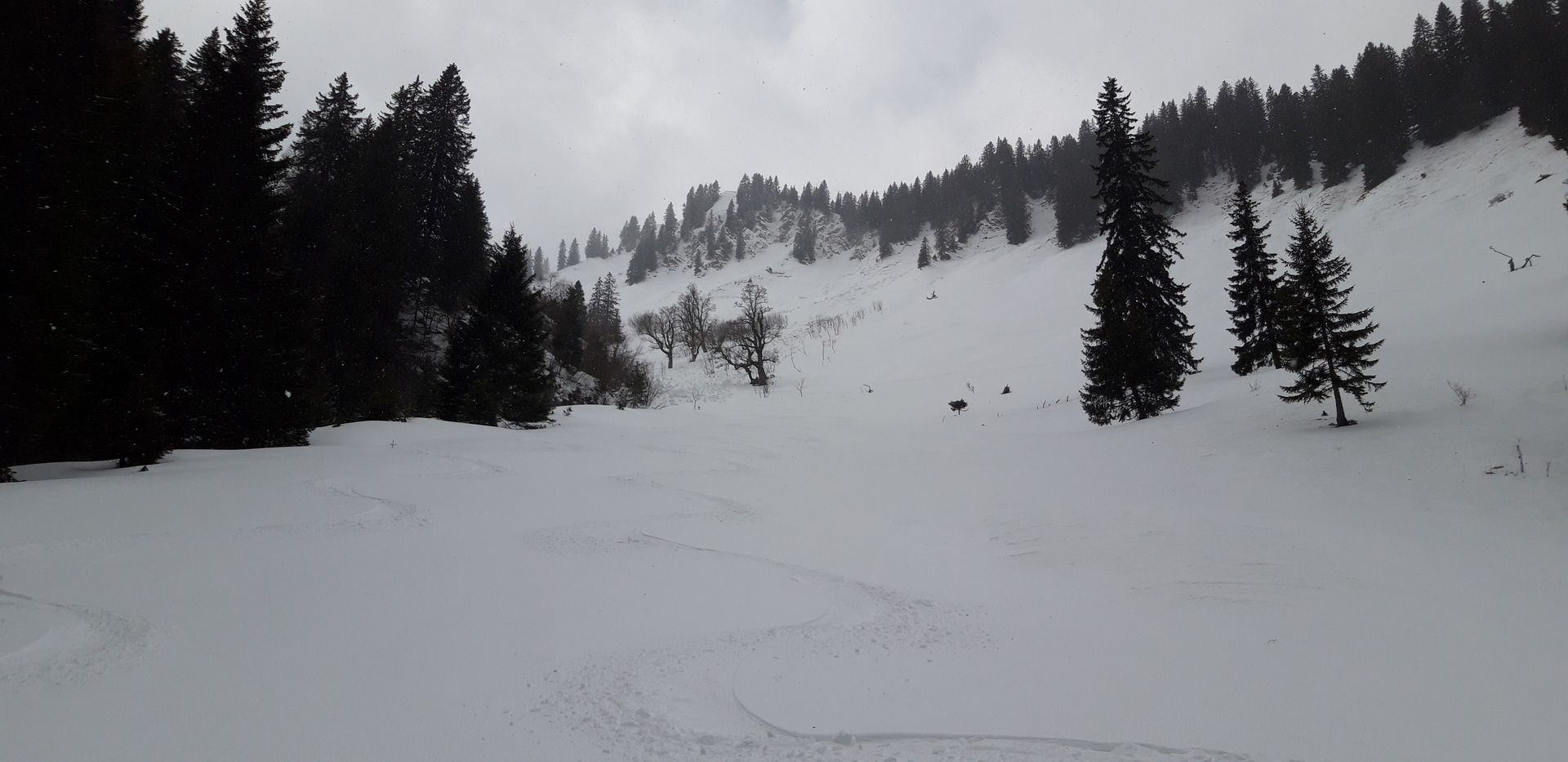Röthenstein-Ost ("Obstgarten"): Sensationeller Pulver! Die steile Einfahrt war aber einigermaßen abgeblasen, sodass hier keine Lawinengefahr bestand.