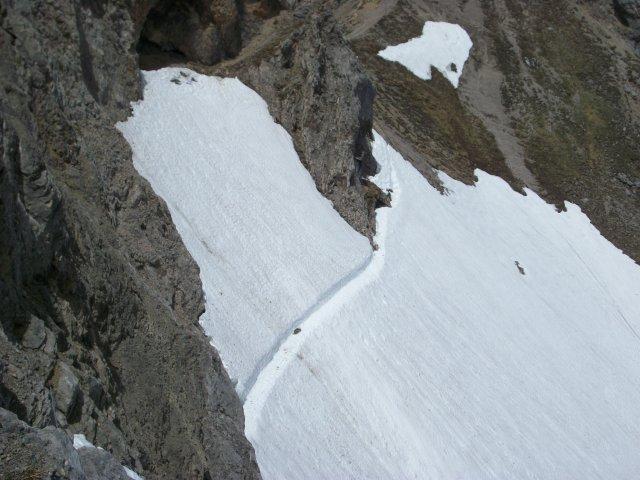 Tourenverhältnisse: Problemlos zu gehen, auf MWH nur noch vereinzelte Schneefelder, bei denen man aber gut aufpassen muss, ist fast nicht mehr tragfähig und vereinzelt bin ich trotz leichtem Gewicht bis zur Hüfte eingebrochen. Der Wirt vom Brunnsteinhaus hat Steig stellenweise freigeschaufelt (Foto) - besonders hier wird in den nächsten Tagen meiner Meinung nach die Einbruchgefahr steigen, also dann zeitig los.