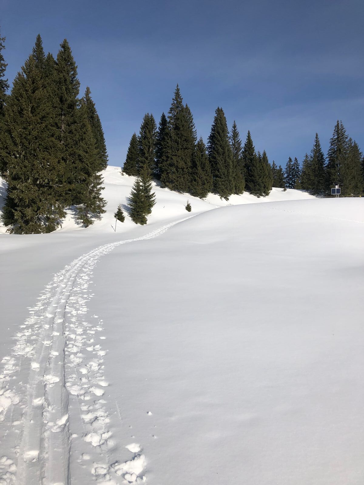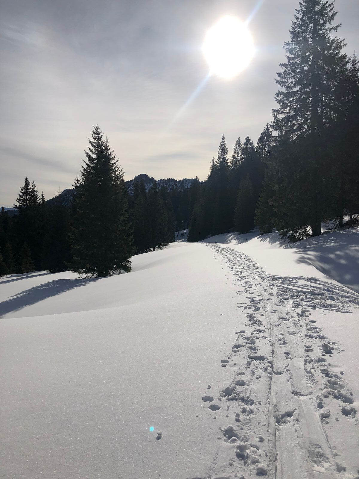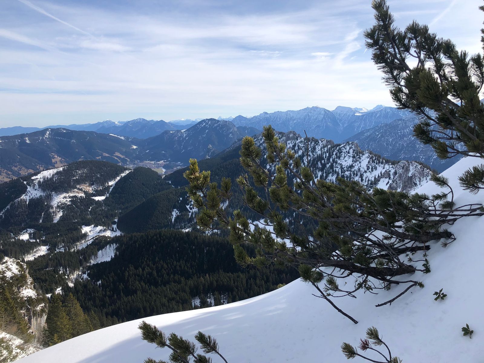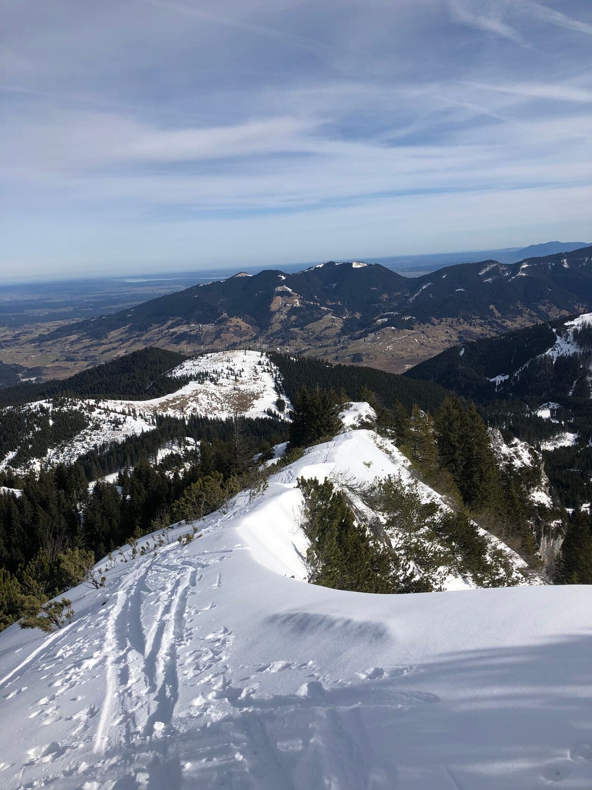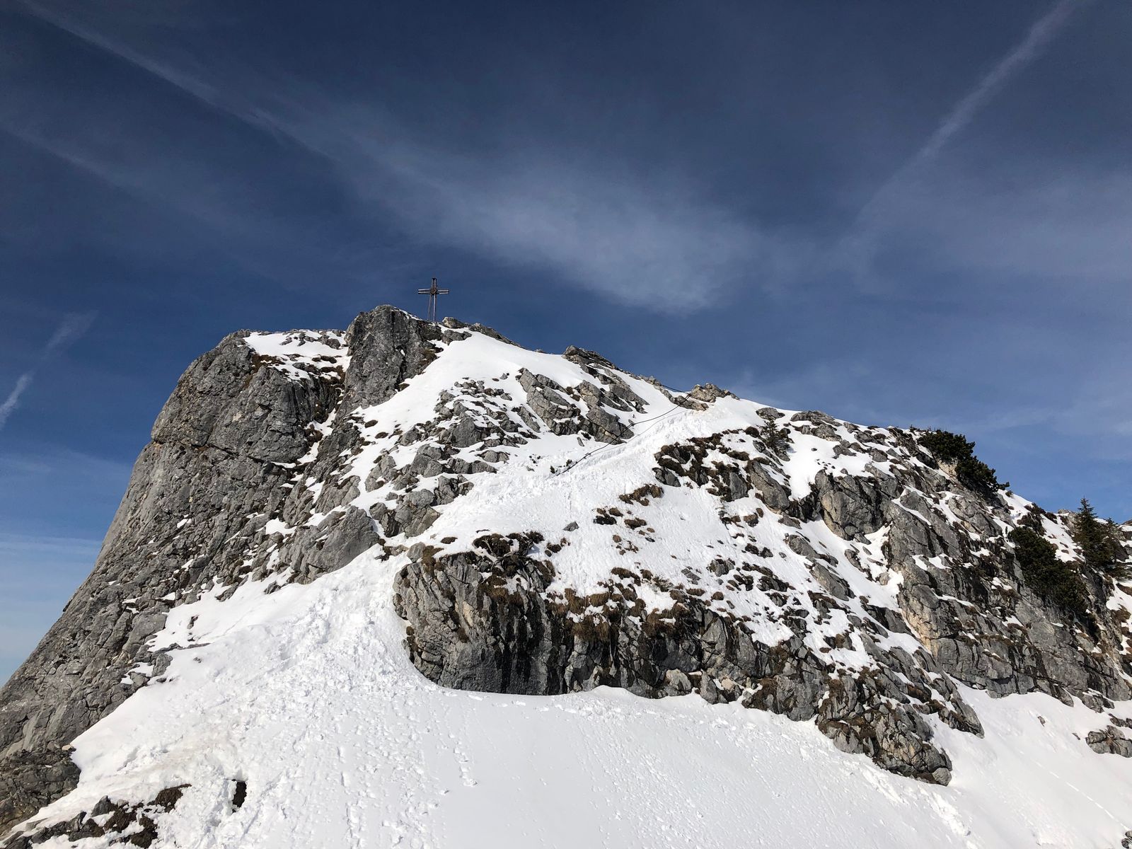 Vom Parkplatz an genug Auflage für Aufstieg. Nordostkamm stellenweise vereist, da gilt es an den entscheidenden Stellen Obacht zu geben, dass man nicht abstürzt. Die letzten Höhenmeter auf dem Kamm vor dem Gipfel muss man Stand gestern (25-Feb-2022) die Ski tragen, Steigeisen sind aber keine notwendig.