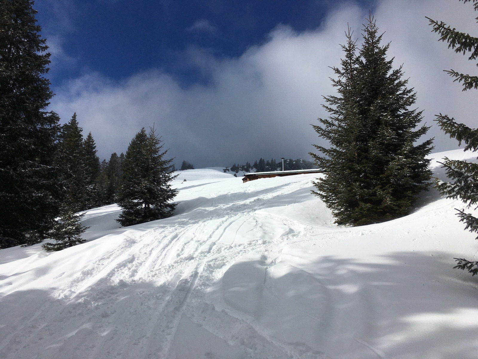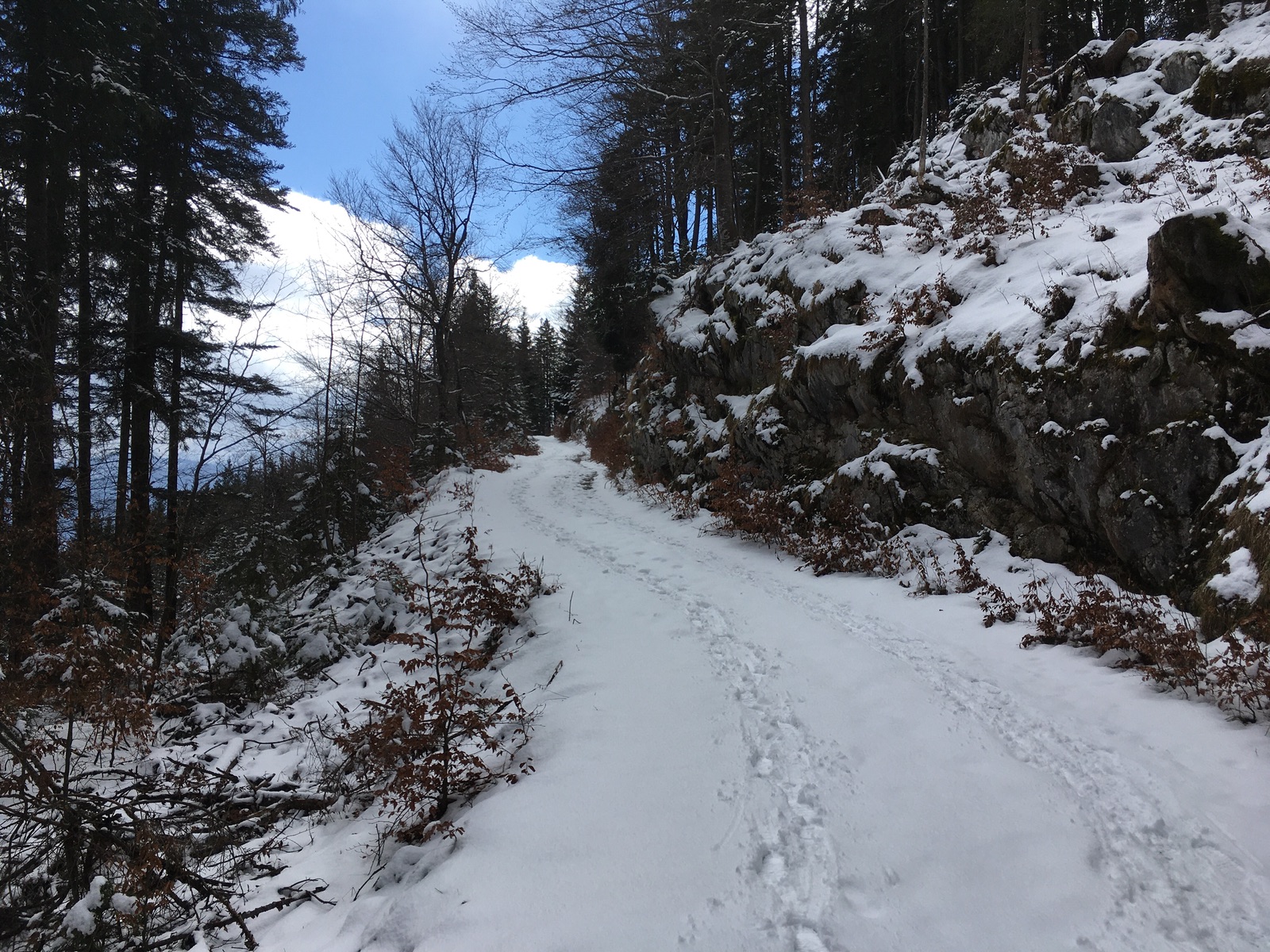 Aufstieg von Oberletzen - es liegt nur der Neuschnee, abfahren kann man hier nicht:
