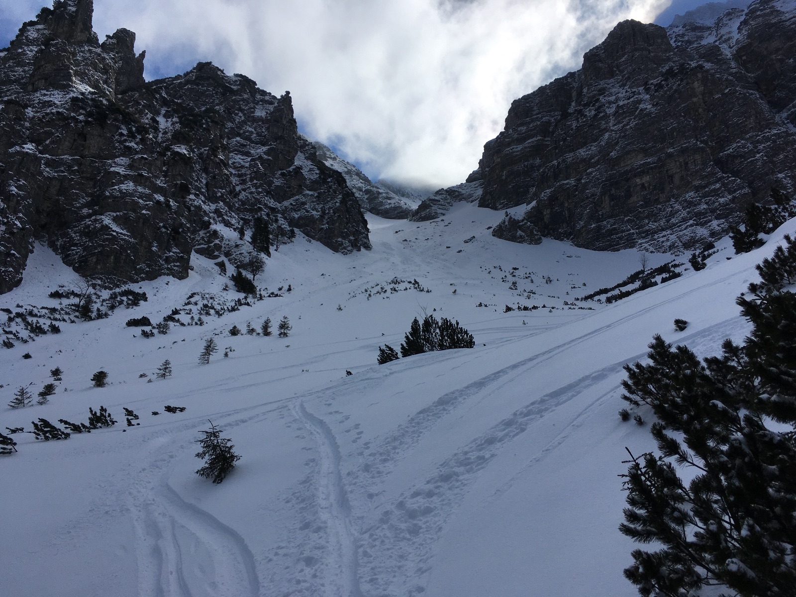 Blick von meinem Endpunkt auf eine der Ausstiegsmöglichkeiten aus dem Kar - allesamt steil (u.U. Steigeisen / Pickel sinnvoll):