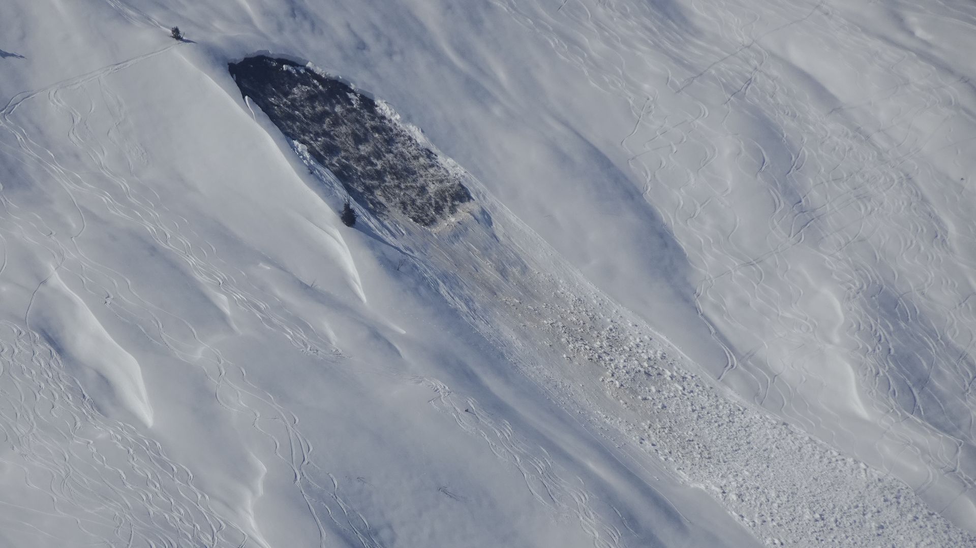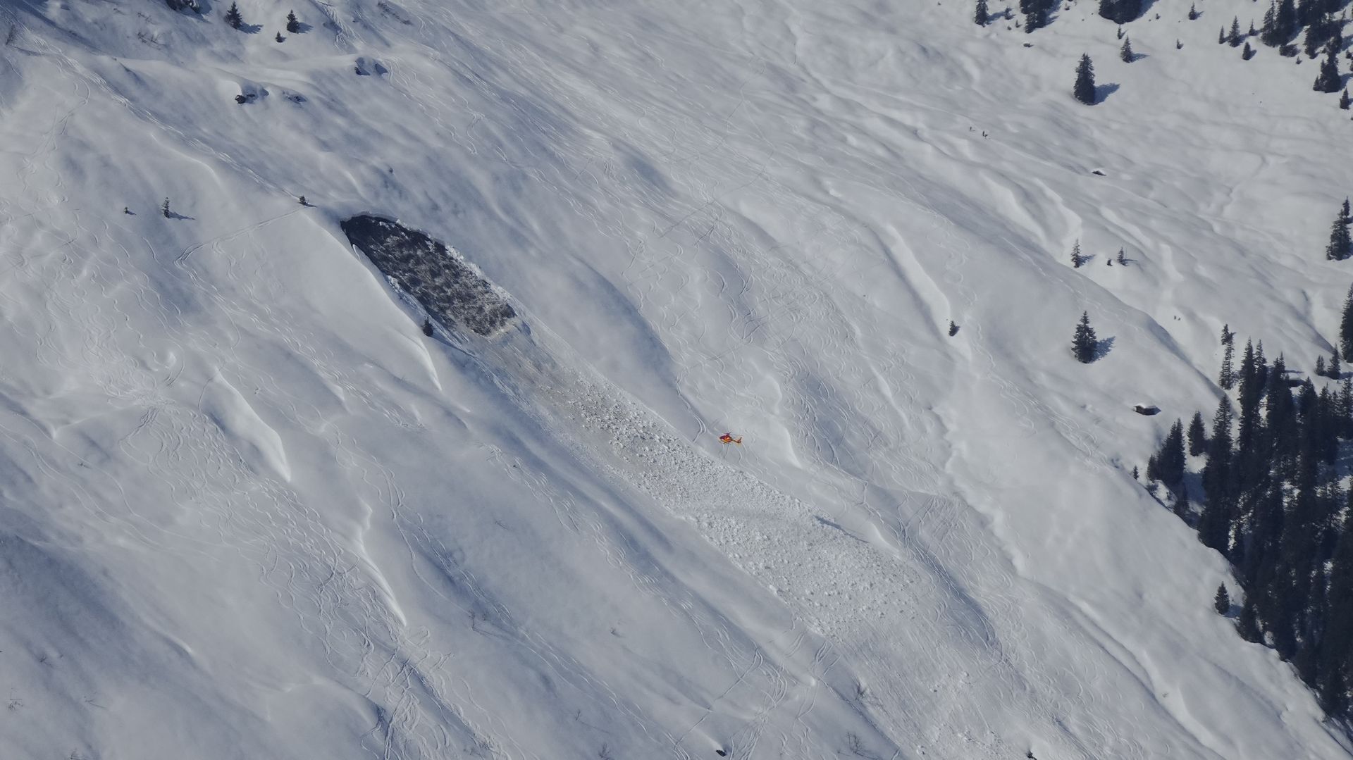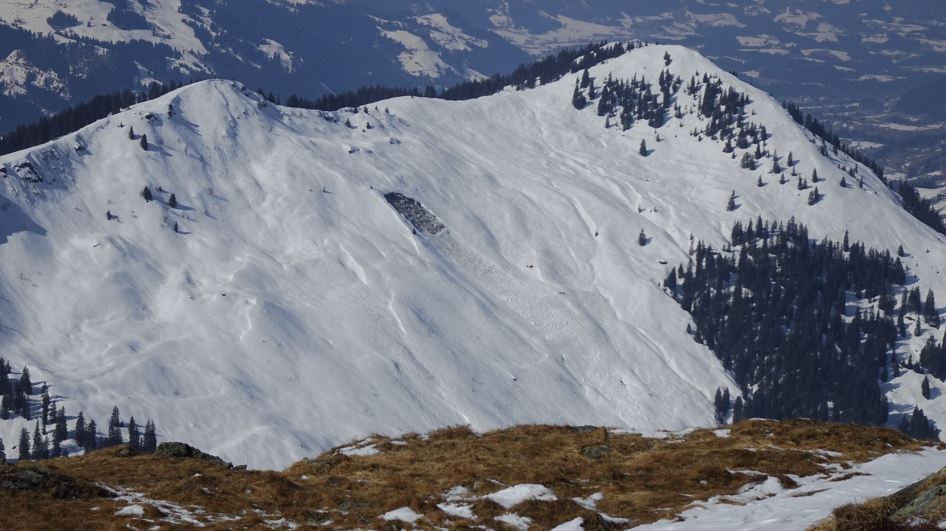 Als wir auf dem Gipfel waren, ist eine große Grundlawine am Osthang vom Hahnenkampl abgegangen (siehe Fotos), an einer Stelle, die vom Gipfel schlecht einsehbar ist. Wir haben das erst dann gemerkt, als wir nach Norden abgefahren sind. Ein Hubschrauber hat nach möglichen Verschütteten gesucht und scheinbar keine gefunden.