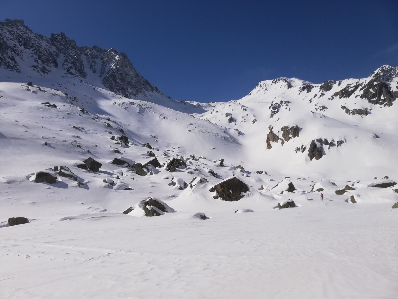 Wie auf tourentipp beschrieben vom (Winter) Ende der Oberalppassstraße bei Tschamut (1640m) auf den Badus (ohne Piz). Nach klarer Nacht und bei etwas niedrigeren Temperaturen wie am Vortag war alles durchgefroren und es hatte endlich gute (Schnee) Verhältnisse bei der Abfahrt. Die obersten 500Hm etwas Pulver auf Harsch, darunter firnig bis weich, schattseitig auch Harsch, überall gut bis sehr gut zu fahren. Im Aufstieg im unteren Teil bis zum Tumasee Harscheisen angenehm. Nur wenig Leute auf dieser Tour.