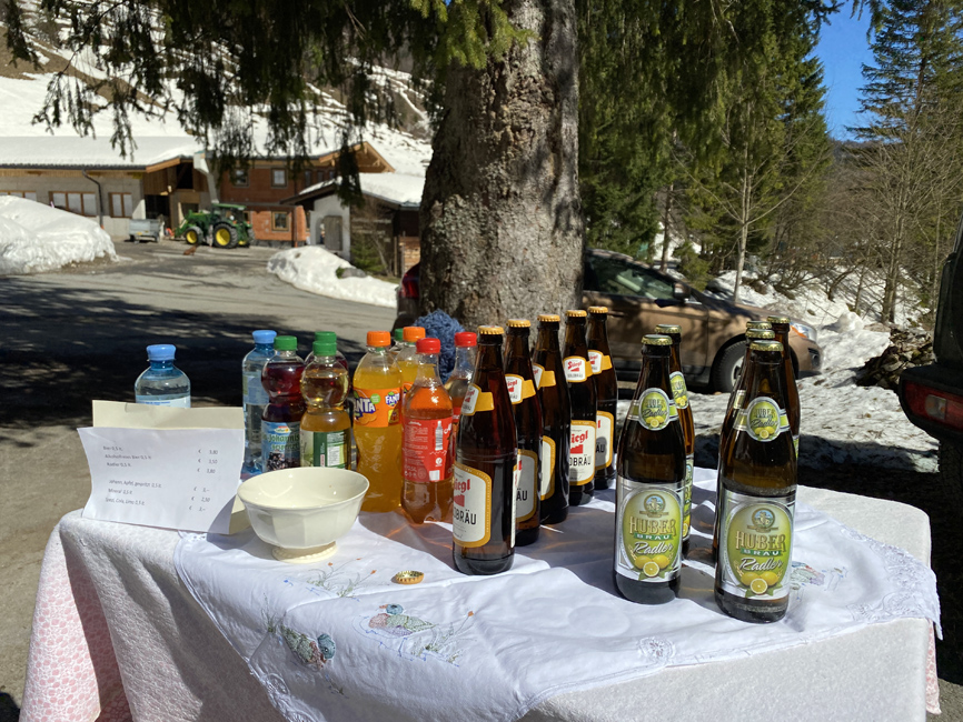 An der früheren Griesneralm, die nun ein paar Meter weiter talwärts wieder aufgebaut wird, erhält der durstige Skibergsteiger am Parkplatz übrigens kühle Getränke plus Sitzgelegenheiten von der sehr netten und durch die Brandkatastrophe gebeutelten Almwirtin.