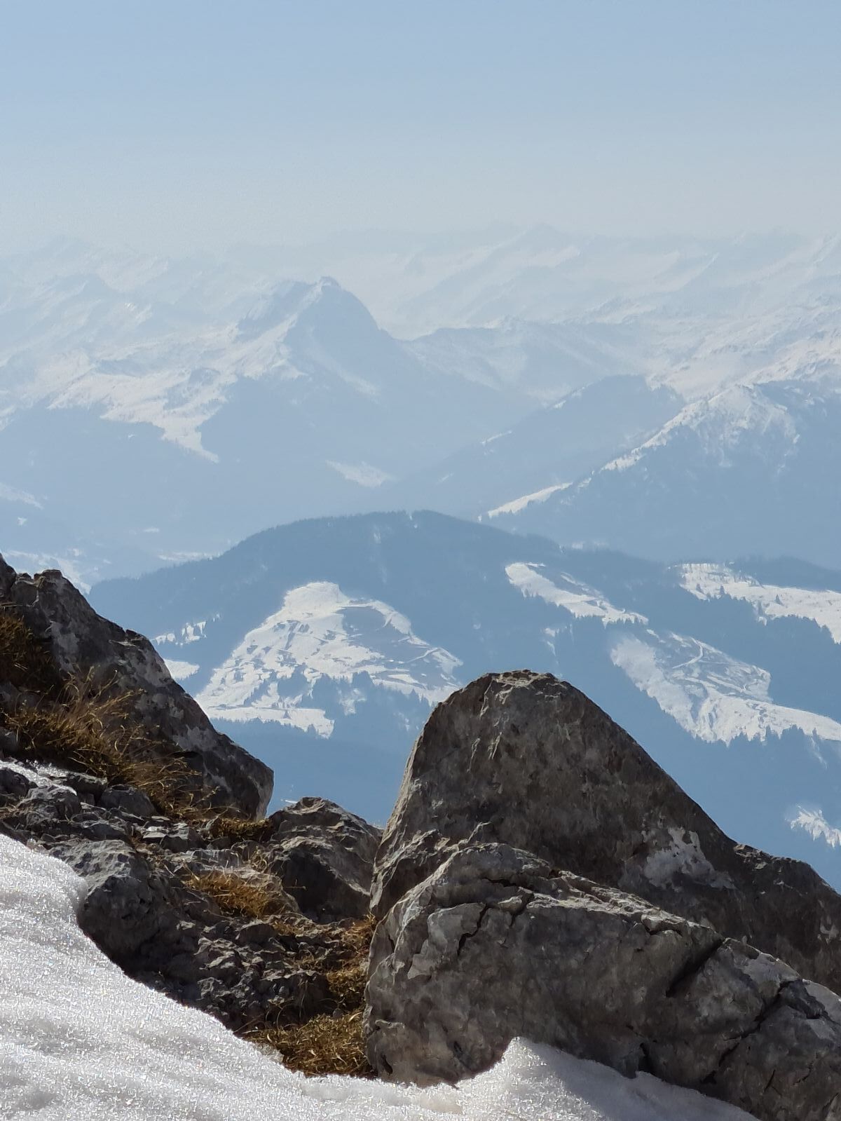 Ansonsten hat sich seit Mittwoch nicht viel verändert, einzig der letzte kleine Hang überm Parkplatz apert nun doch relativ rasch aus. Heute konnte man noch durchfahren, morgen vielleicht schon nicht mehr. Weil es sonst aber mehr als genug Schnee gibt und diese Stelle nur ganz kurz ist, wird sich die Tour bis zum Schlechtwettereinbruch lohnen.