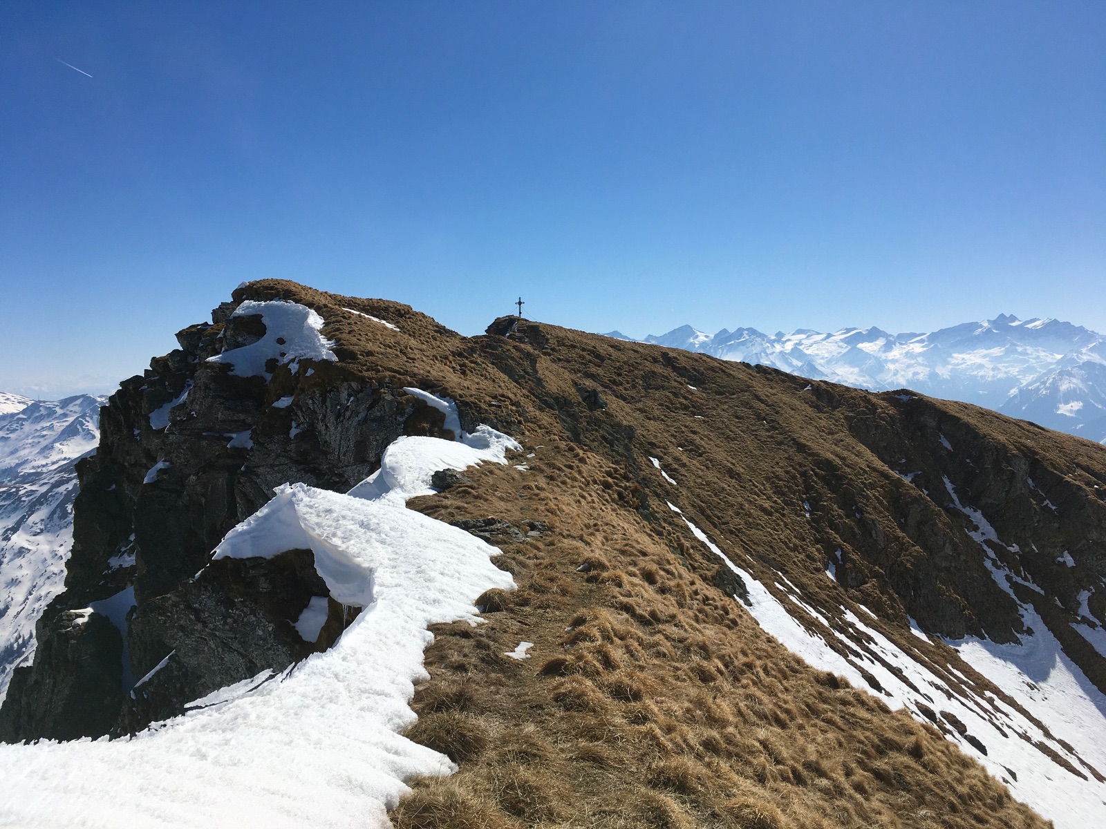 Der kurze, zur Zeit unproblematische Übergang zum Gipfelkreuz: