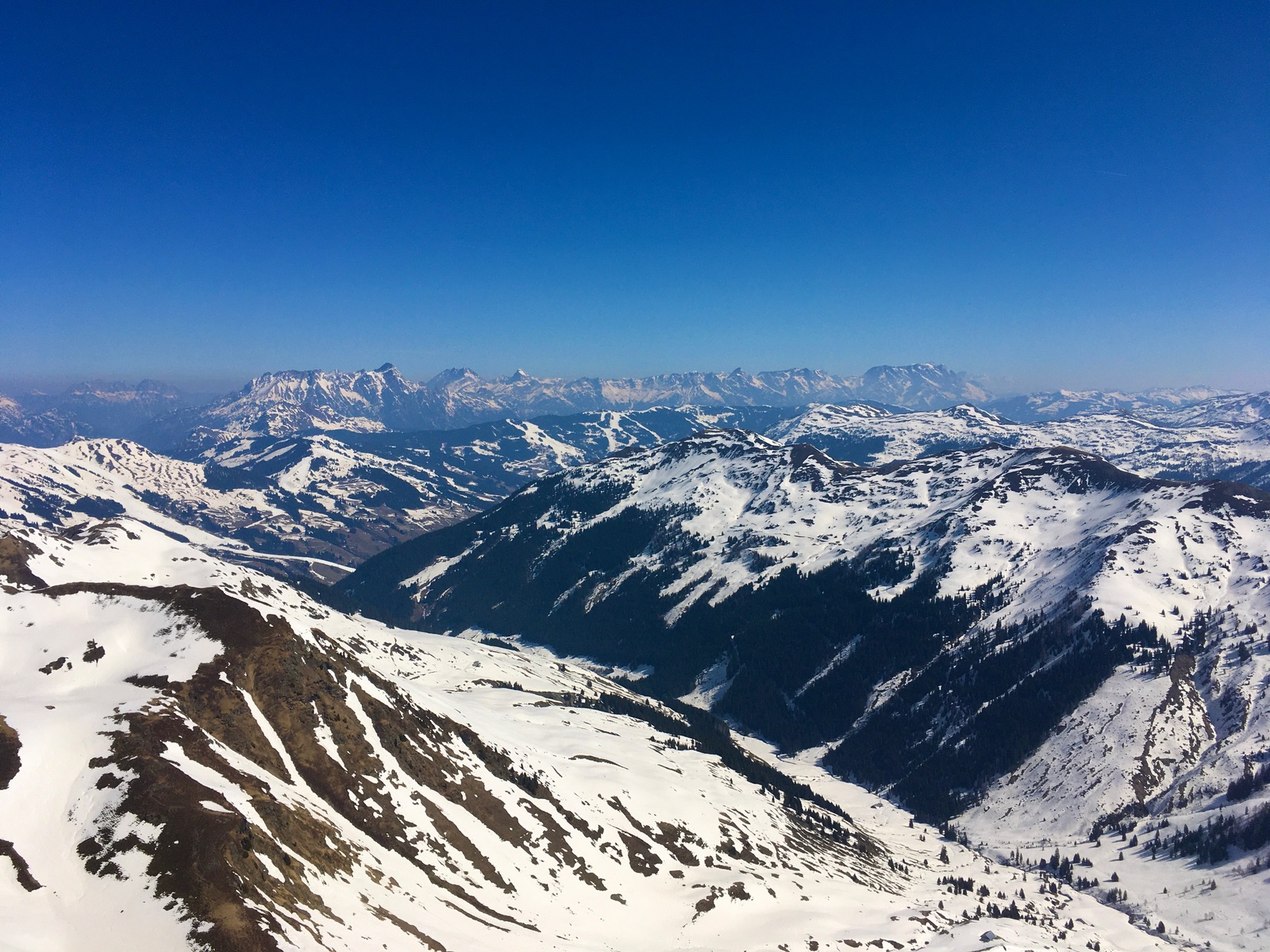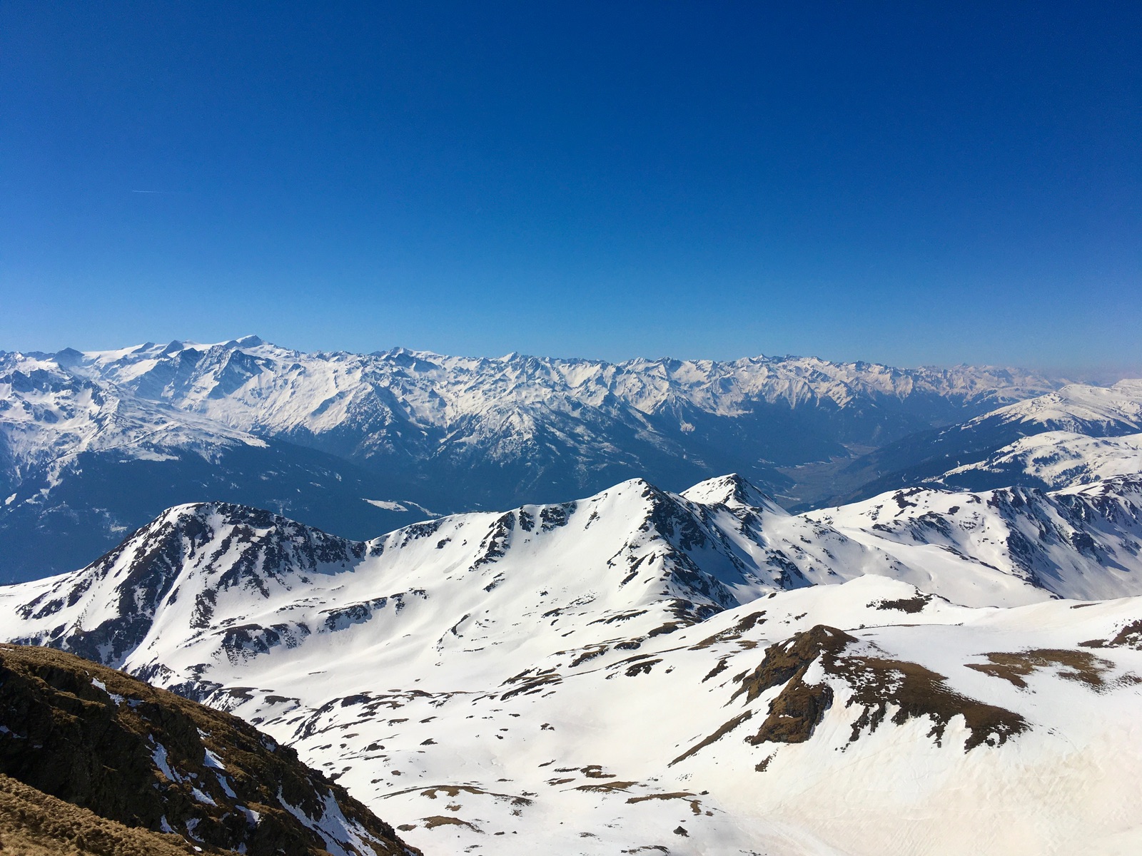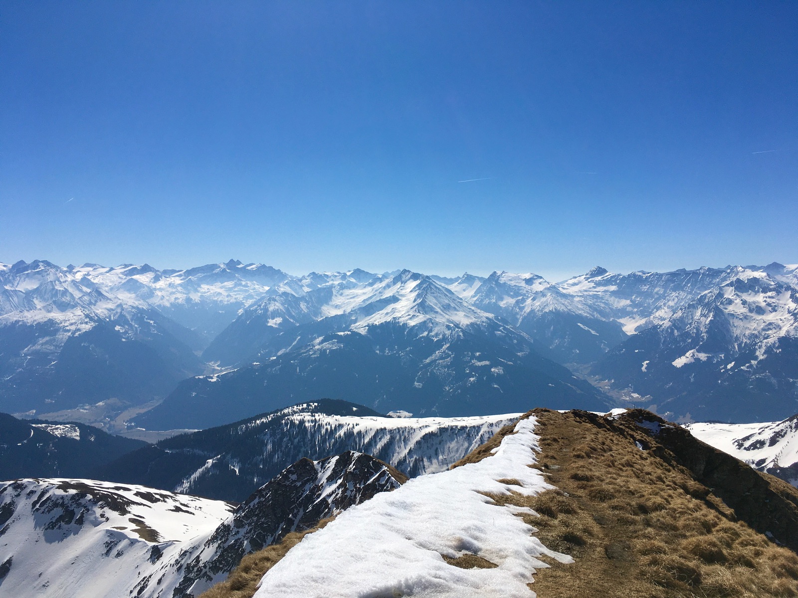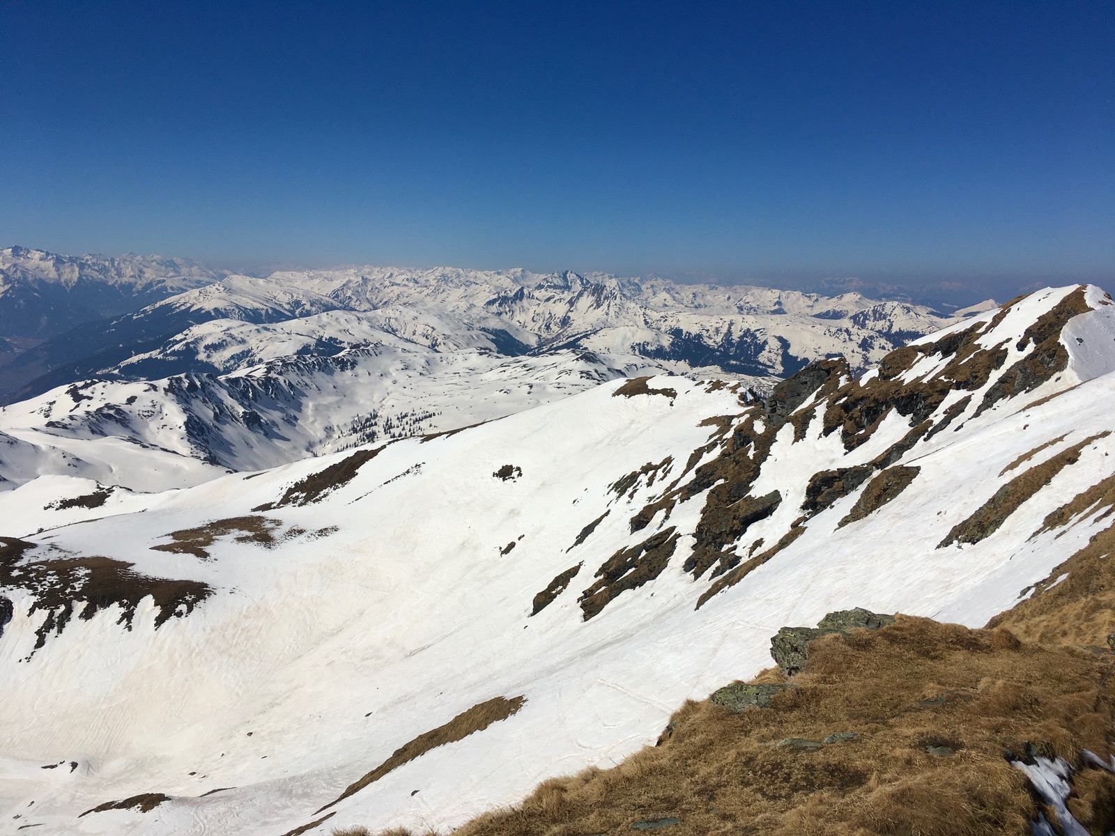 Blick vom Gipfel auf einen Teil des Abfahrtsgeländes und in den Oberpinzghau: