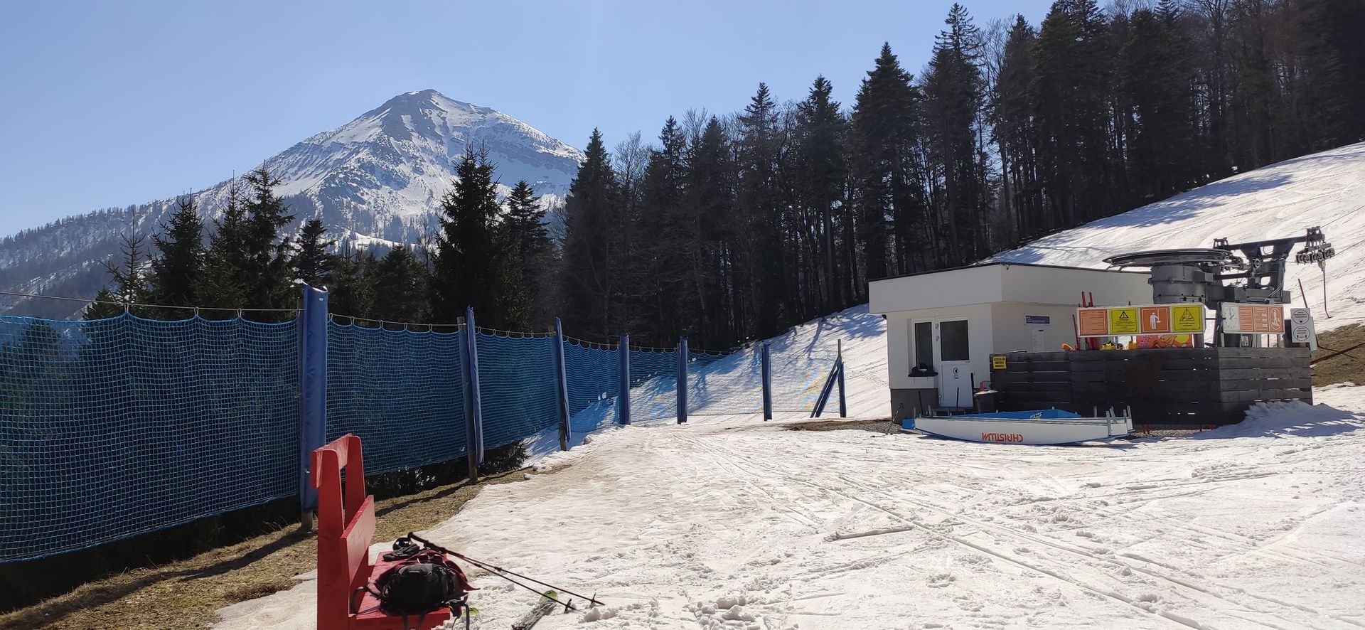 Am letzten Tag des Liftbetriebes dieser Skisaison, ein Sonntag, stiegen wir gestern am Rand der fast leeren, hervorragend präparierte Pisten bis auf 1300 m, der bessere Teil der Gruppe bis zum Gipfel 1758 m auf. Die Abfahrt auf den oben breiten Hängen wie auch auf den unten etwas schmaleren Schneisen war um 12 Uhr im besten Firn sehr genussvoll. Zwischen 10 und 14 Uhr wäre es auch noch auf der fast leeren Piste gut gewesen. Nur hin und wieder waren ein paar andere Skiläufer zu sehen.