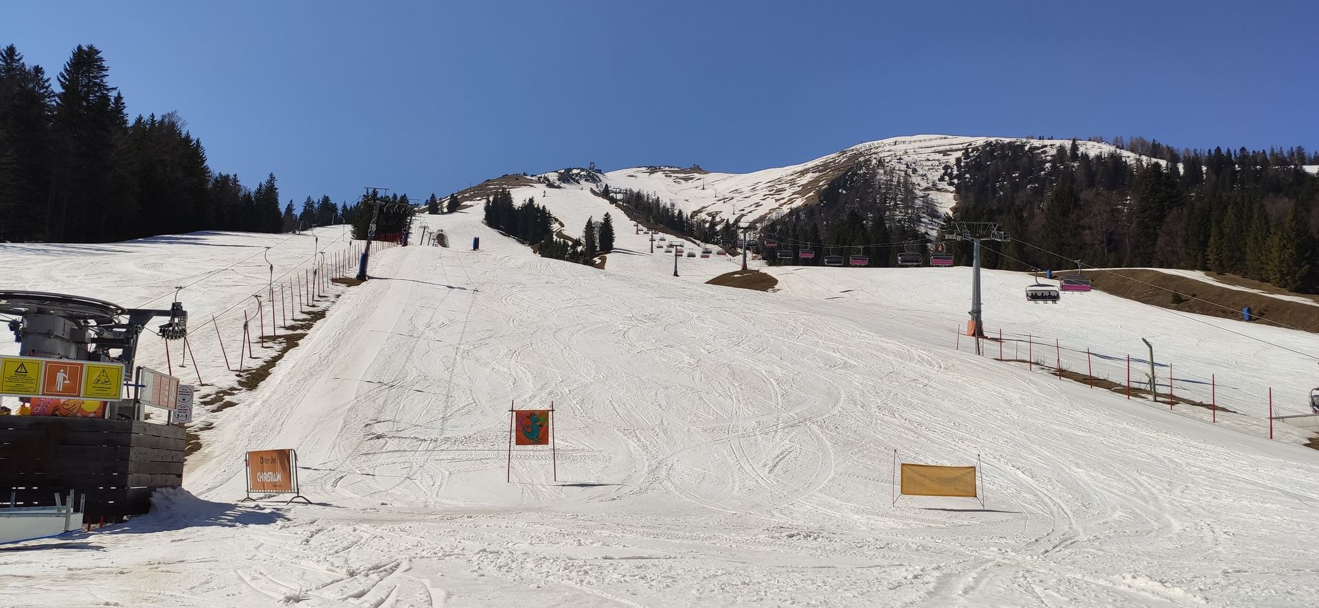 Es liegt noch sehr viel Schnee. In der unteren, südlichen Abfahrtsschneise meist über 1 m. Falls bei den am Ende der Saison üblichen Abbauarbeiten und beim Räumen der kreuzenden Straße die Schneeoberfläche nicht zu sehr verwüstetet wird, ist das Gebiet für Pistentouren wahrscheinlich noch für einige Wochen geeignet. Es ist jedoch auch mit einer Änderung der Schneequalität bei den erwarteten Schneefällen zu rechnen.