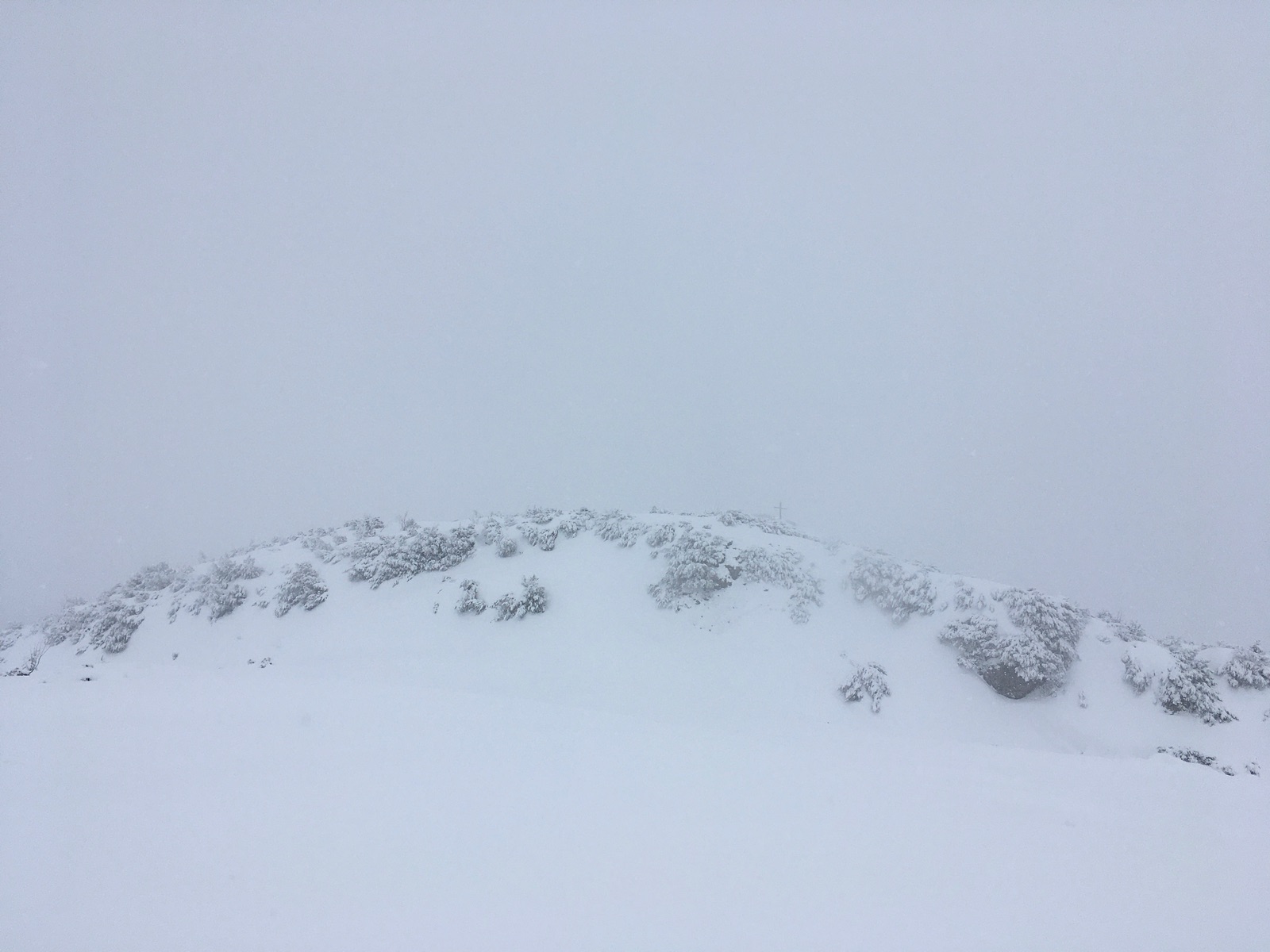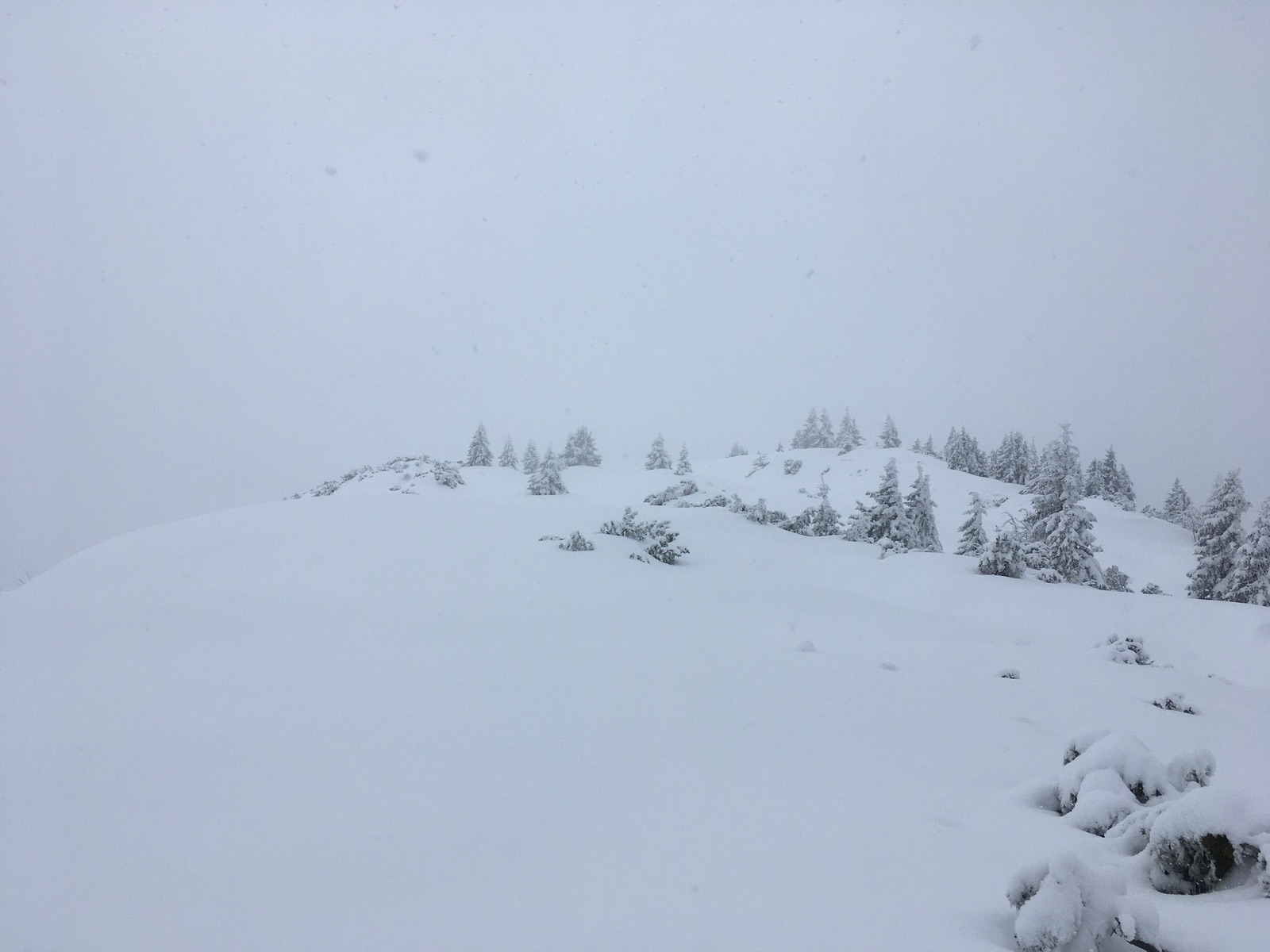 Abfahrt im Gipfelbereich schöner Pulver, leider Sicht mäßig:
