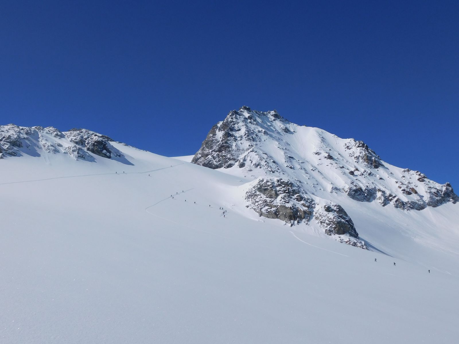 Am Montag zur Jamspitze wurds dann ziemlich voll. Wir sind dann auf die längere Aufstiegsroute ganz links ausgewichen, dort wars noch ziemlich leer. Ein schönes langes Skitouren-Wochenende wars!