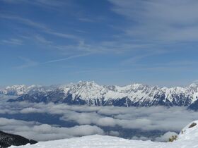 dann über den Ostrücken direkt zum Gipfel. Kurze Abfahrt zur auf 2610 m gelegenen Glungezerhütte(Einkehr unbedingt empfehlendswert, netter Wirt, gutes Essen)