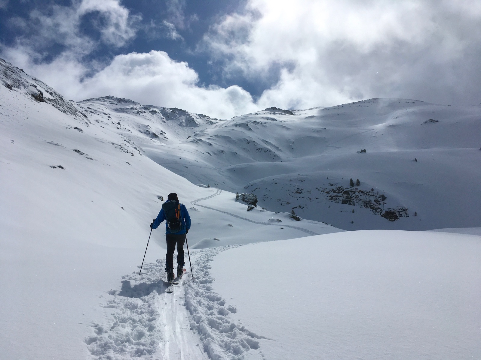 Viel Schnee hat es auch in den Tuxern nicht, aber für diese Route und mit dem hohen Ausgangspunkt in Hochfügen (Parken 5 Euro) reicht es. Es gab auch eine Spur zum "Gipfel" sowie zum Marchkopf. Soweit man das sehen konnte, war es aber teilweise etwas schneearm / abgeblasen. Zum Sidanjoch wurde auch aufgestiegen.