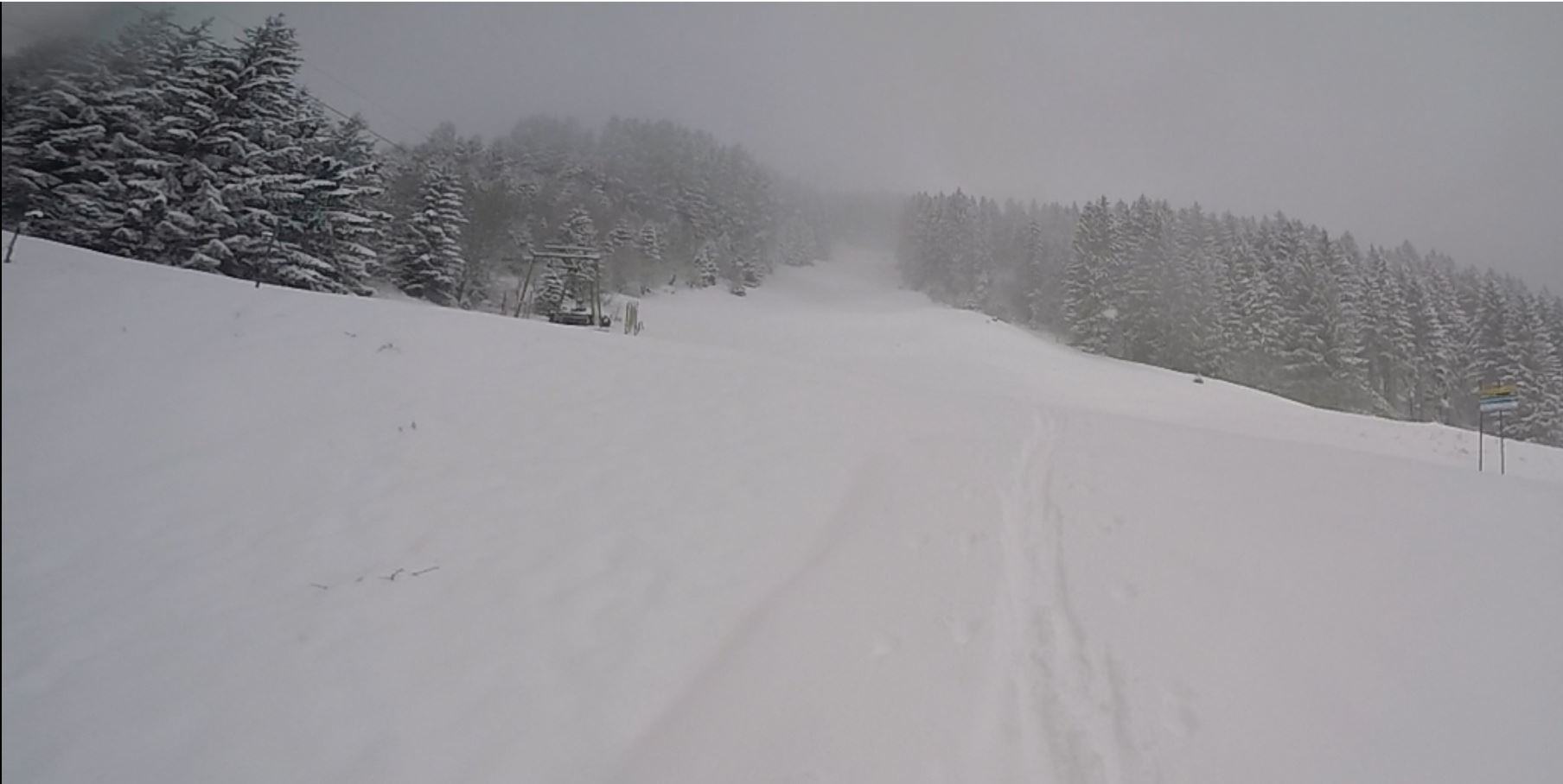 1: Am Ende vom Dorflift, noch mit Schneetreiben