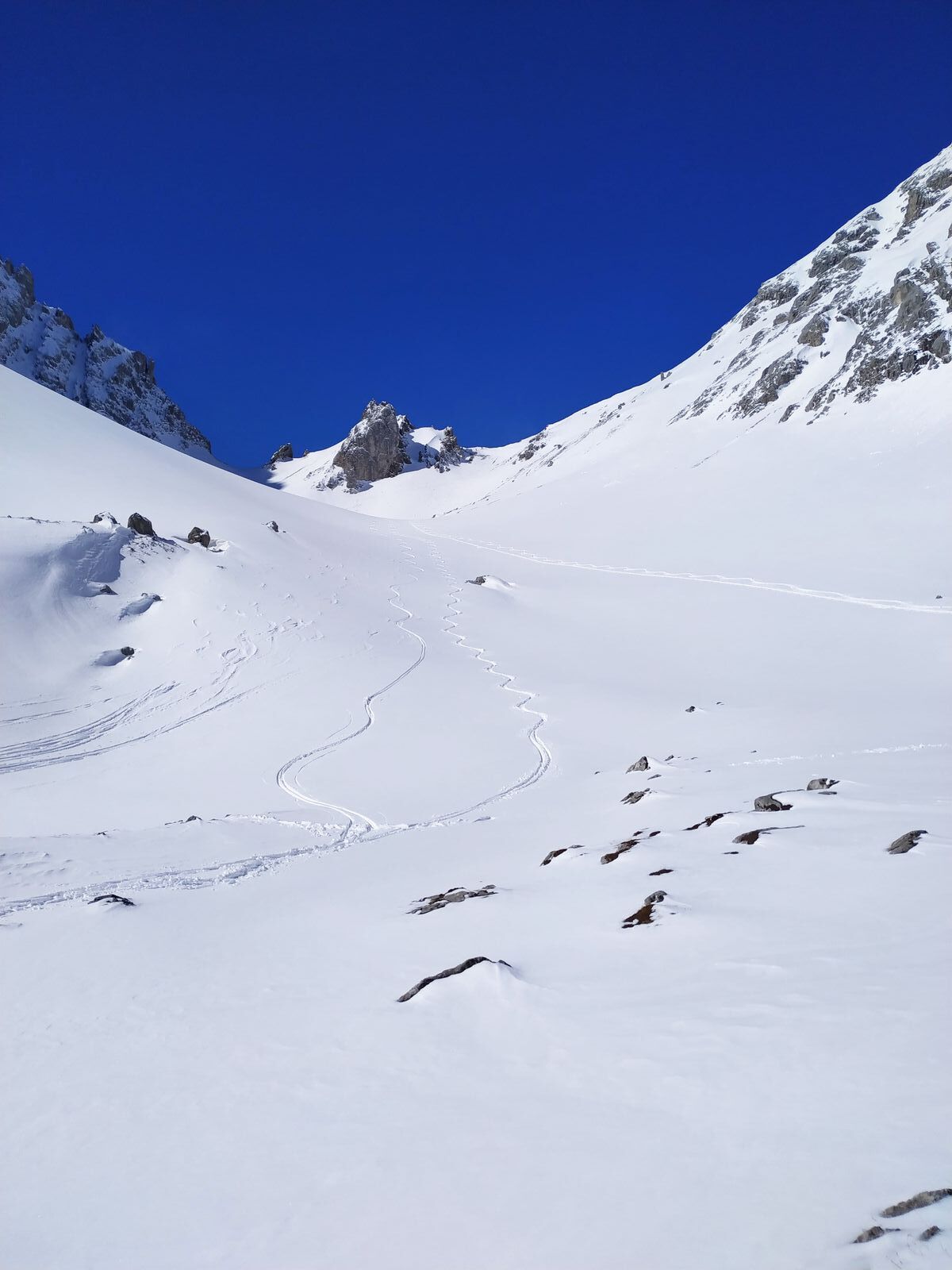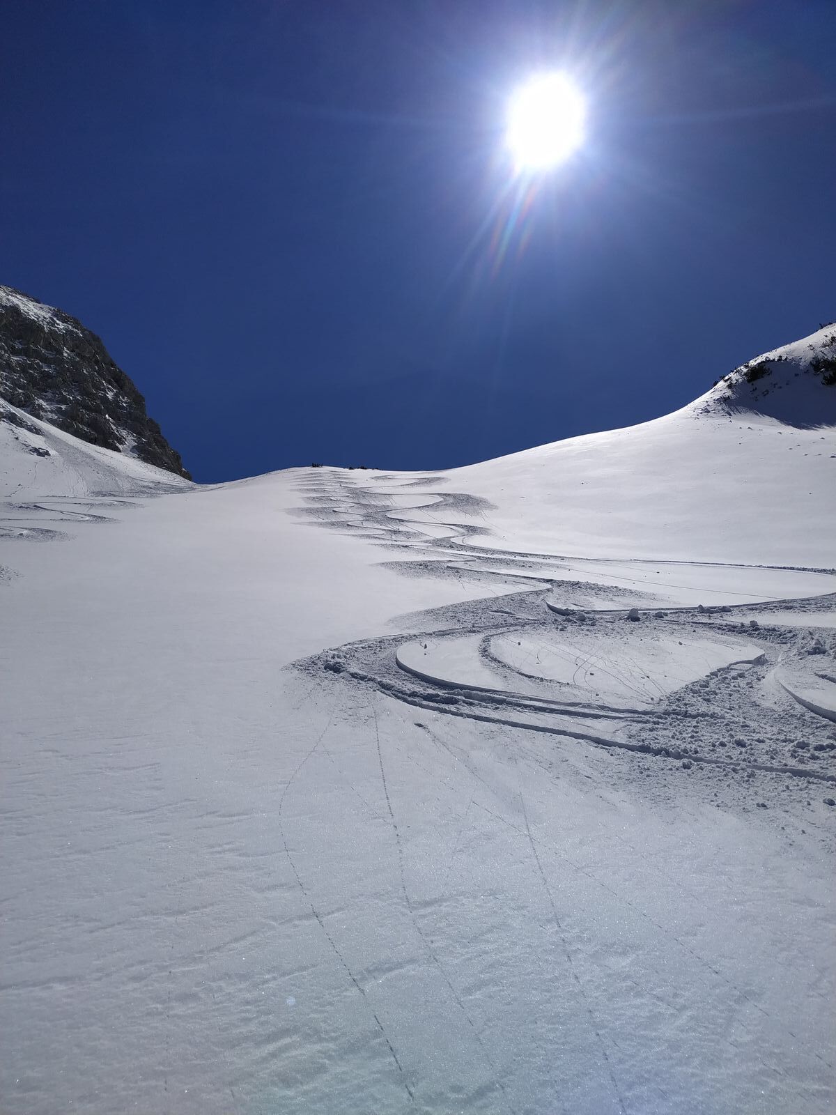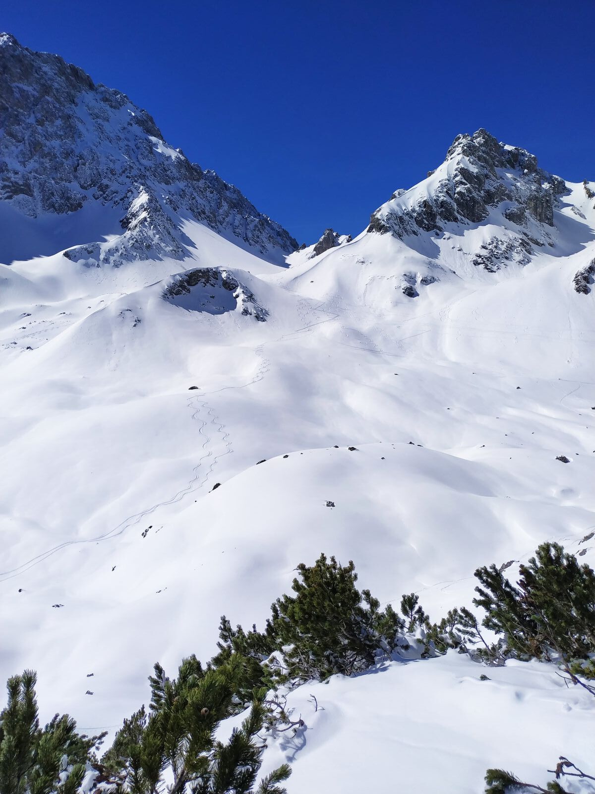 Gestern sehr gute Verhältnisse im Brendlkar. Marienberglifte zu, ergo nur knapp 10 Spuren vom Sonntag im Gebiet, gestern nur 6 Leute unterwegs.