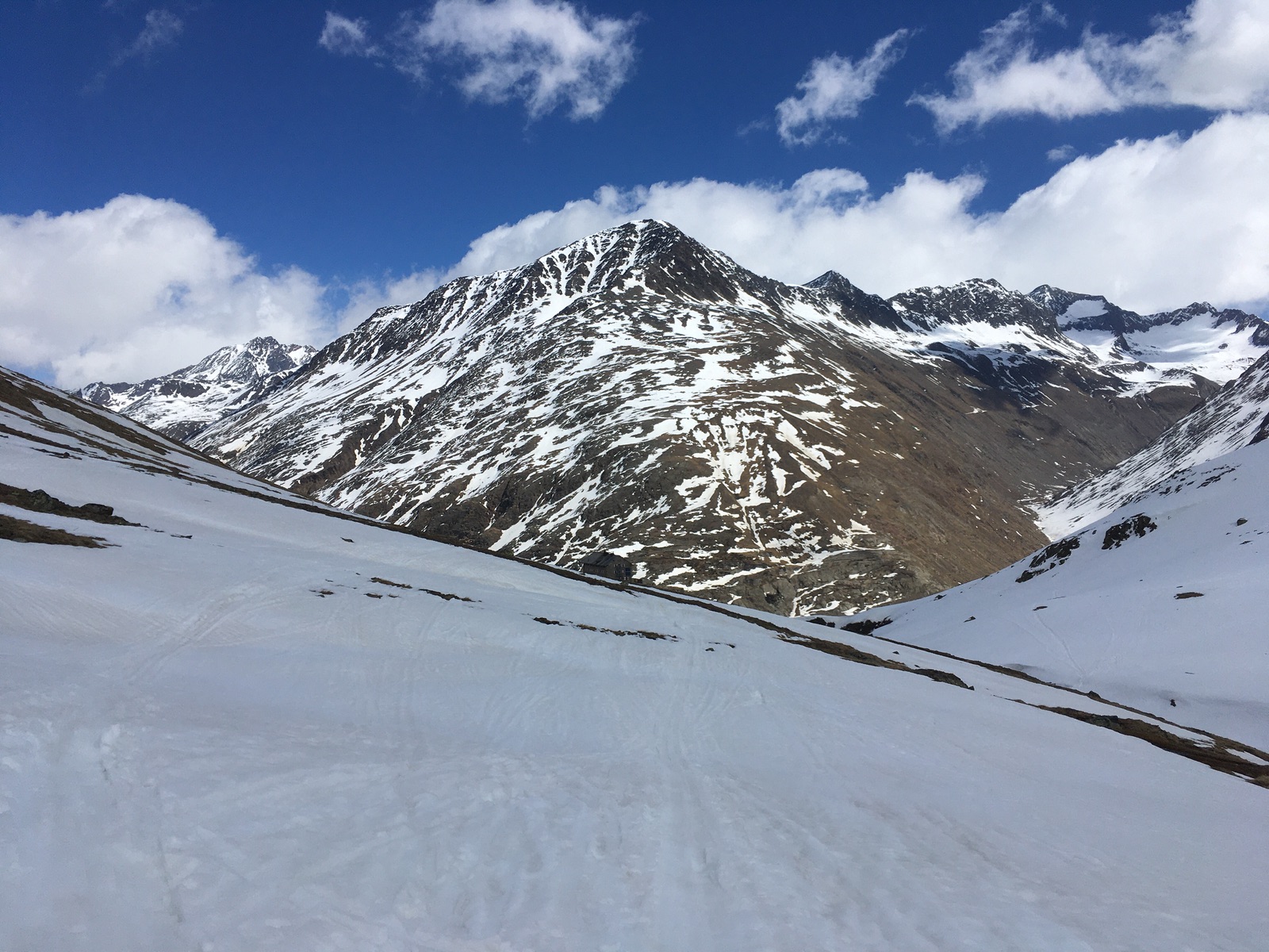 Bei der Abfahrt kurz vor der Martin-Busch-Hütte (in Bildmitte):