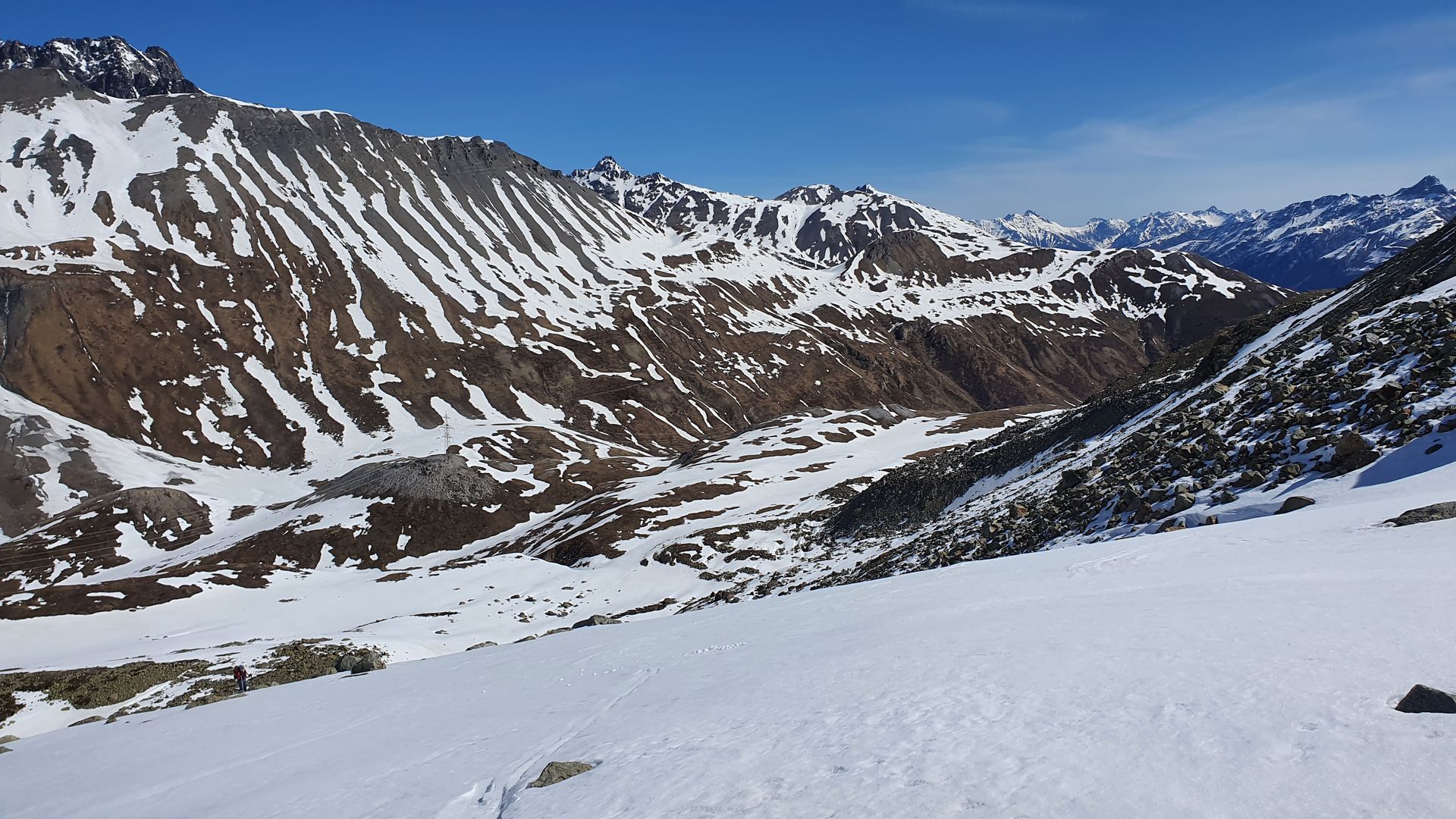 Heute letzte Tour. Mit dem Auto kann man von La Punt die Strasse zum Albula bis zur Schnranke fahren. Dort hat es auch eine große Parkbucht. Heute auch dank klarer Nacht wieder eine gutverfestigte Schneedecke. Über die Alp Nova zum Skidepot des Piz Valetta. Den Gipfel haben wir uns geschenkt. Auf der Abfahrt von oben bis unten super Bedingungen.