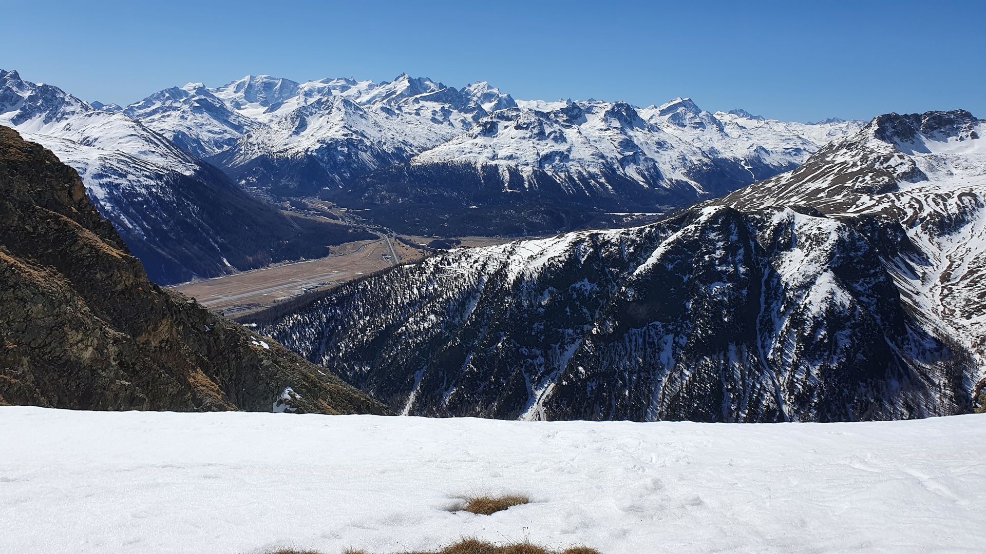 Es hat noch Schnee im Oberengadin und je nach Tourenwahl kann man noch vernünftige Touren machen. Wenn man, wie wir, nicht die Mainstreamberge macht, hat man den Berg für sich alleine. Wir ware die ganzen vier Tage immer alleine unterwegs und der Schnee wurde dank der klaren Nächte zum Ende hin richtig gut. Was wir aus der Ferne sehen konnten, sind die Gletscher der Bernina nicht gut verschneit und die Spalten kann man sogar aus der Ferne sehen.