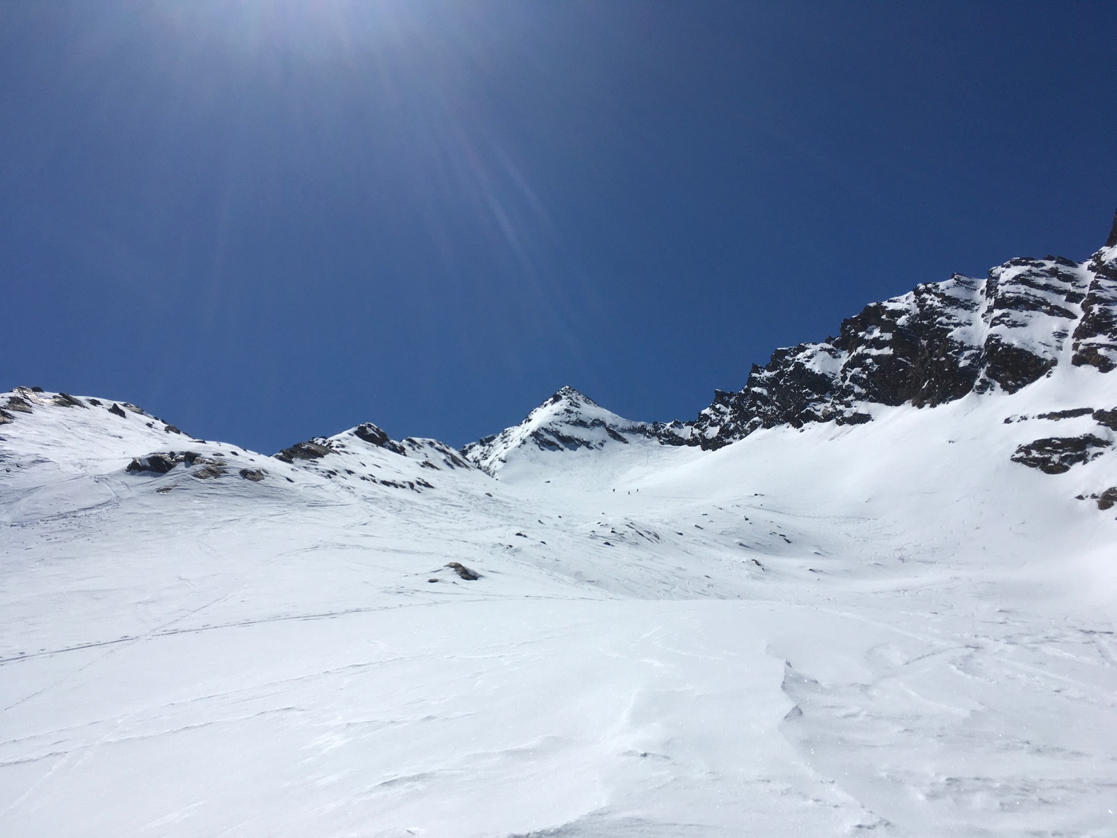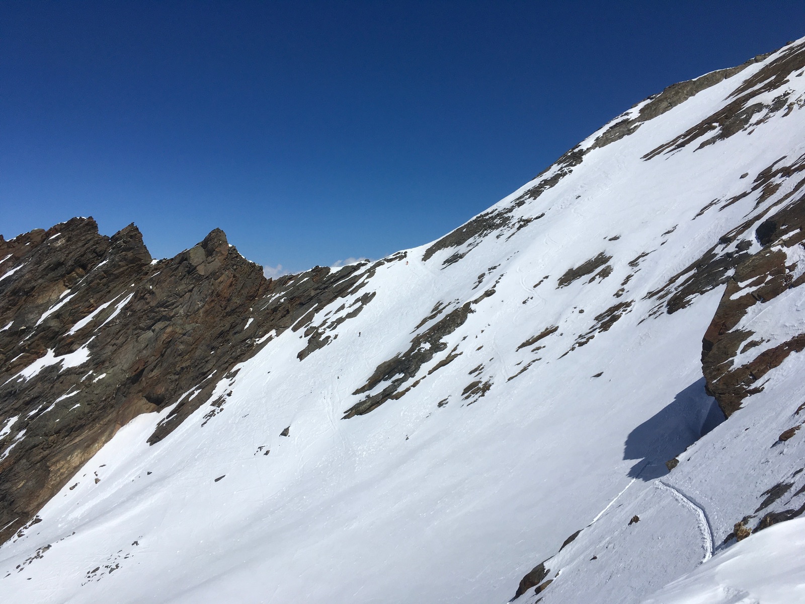 Allgemein liegt in Gurgl mehr Schnee als in Vent, üppig ist es aber auch hier nicht. Am kommenden Sonntag schließt das Skigebiet und damit auch die meiste Infrastruktur. Harscheisen, Steigeisen und Pickel waren wichtige Begleiter die letzten Tage - vielleicht ändert sich das, wenn es wärmer wird und bedeckte Nächte gibt. Die letzten Tage war es aber teilweise aber bockhart.