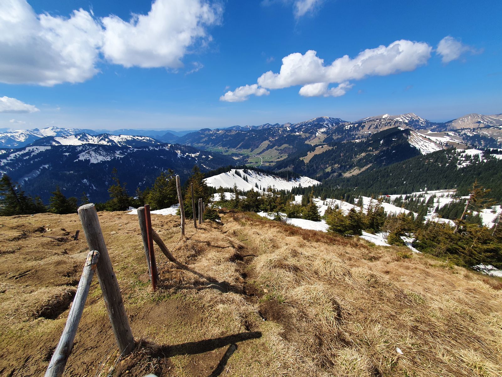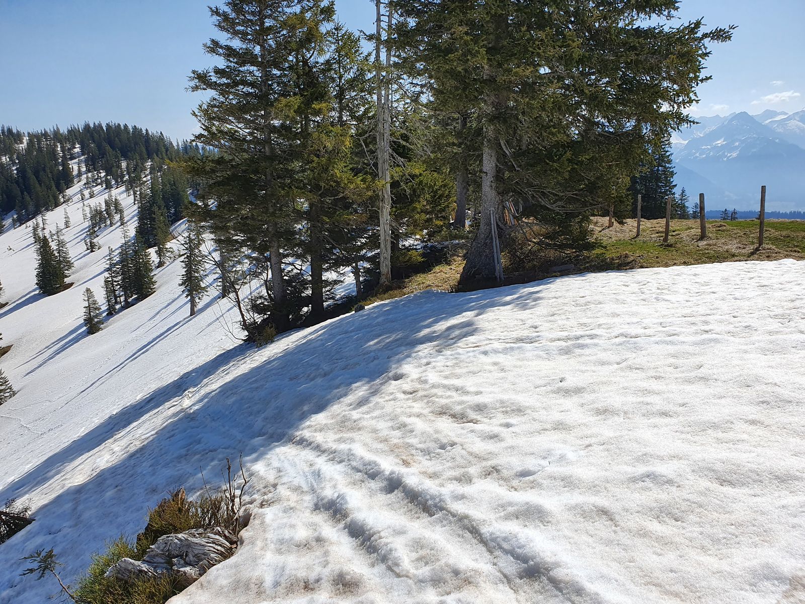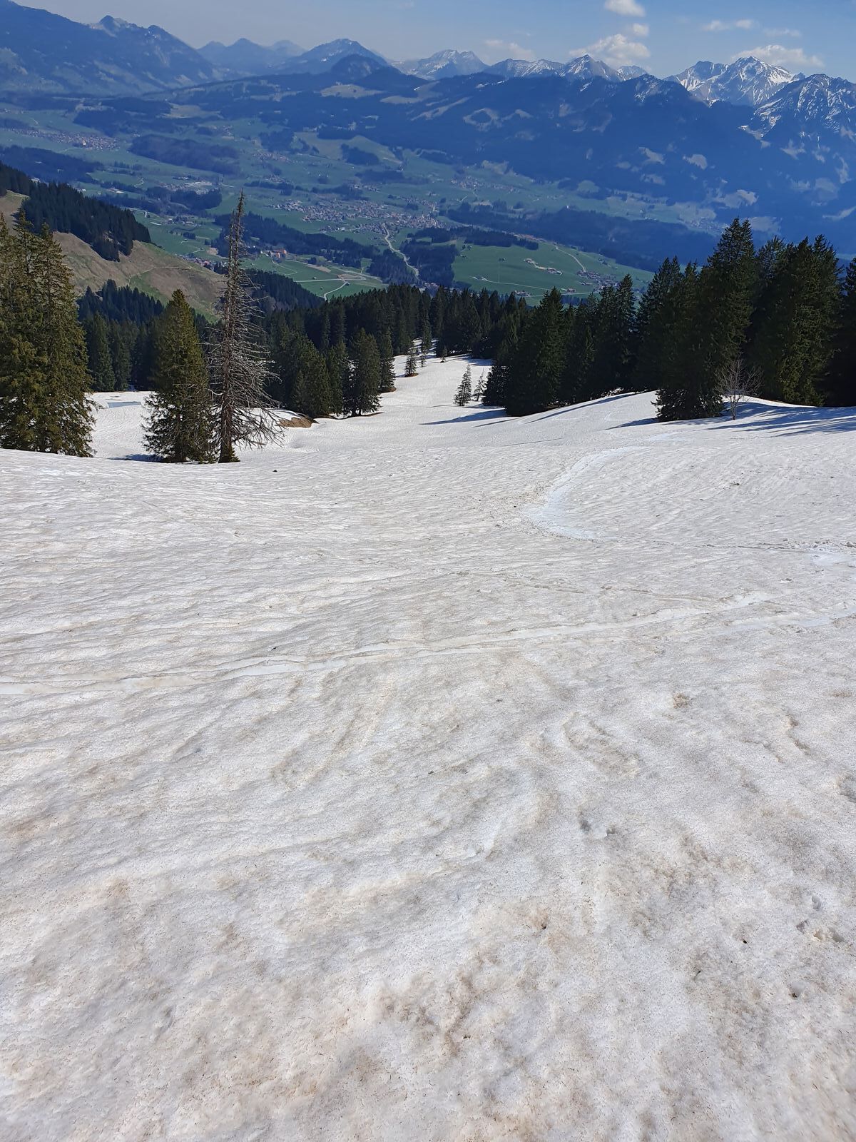 Retour selber Weg. Es wäre auch wenn ich das richtig verstanden habe, möglich vom Bolgengrat nach Norden runter zu fahren, weil es nur ein temporäres Schutzgebiet ist - war mir aber weder sicher, ob das wirklich stimmt, noch wusste ich, wieweit runter noch Schnee liegt. Also einfach wieder die Piste runter nach Grasgehren und dann noch aufs Riedbergerhorn (links hoch, wenn man vom PP aus Richtung Horn schaut - und fast selber Weg runter).