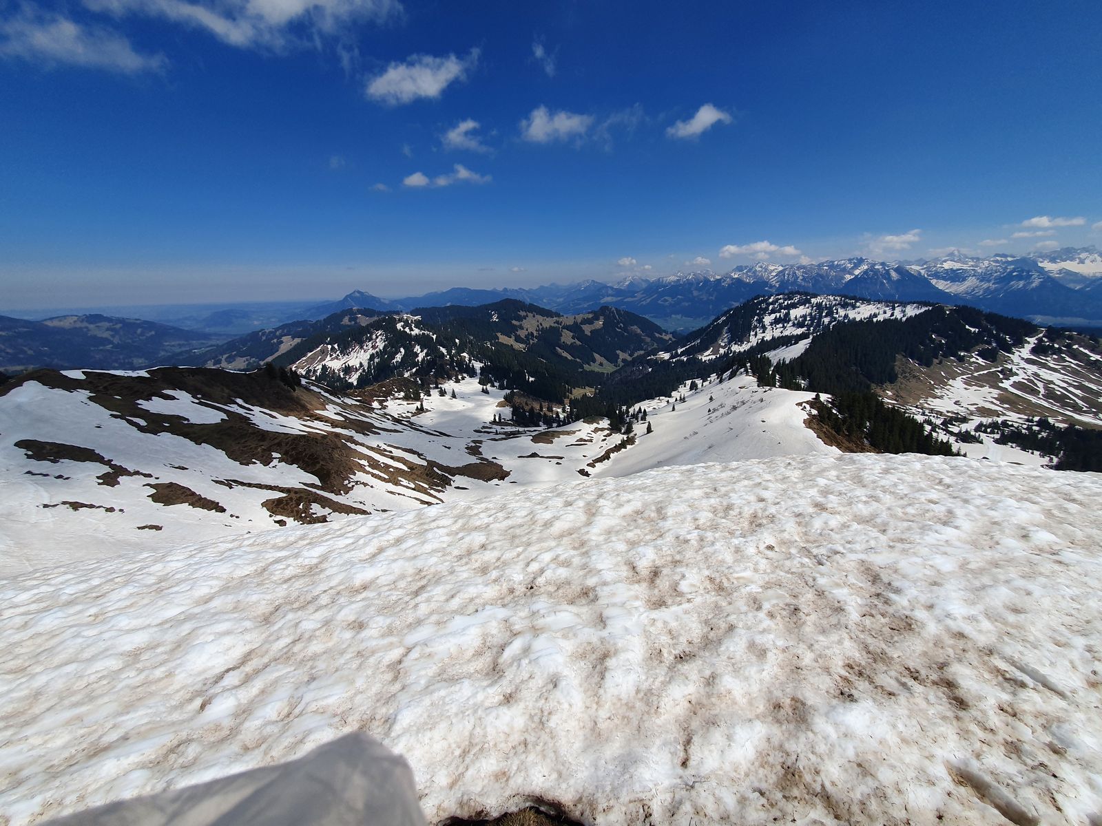 5: Riedbergerhorn, Blick nach Nordosten: unten ist Grasgehren, viel Schnee - und: Richtung Norden (kein gutes Foto gemacht) ist es sehr gut!