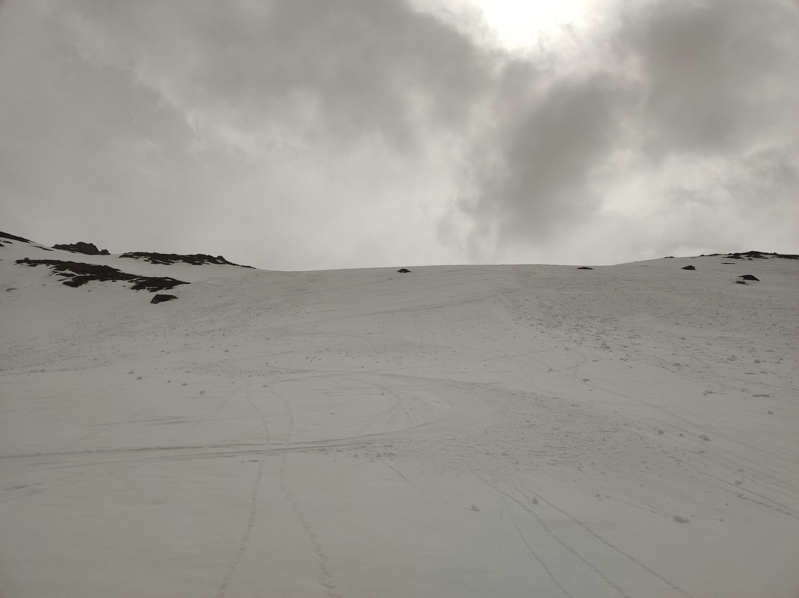 Ich bin über das Sidanjoch auf den Roßkopf und über die Nordflanke abgefahren. 11.15 Uhr war eigentlich der perfekte Zeitpunkt, aber ein paar Minuten vor der Abfahrt schoben sich Wolken vor die Sonne, sodass der Firn im Steilhang schon wieder etwas hart wurde. Die restliche Abfahrt bis zum Bach war fein. Danach Aufstieg zum Kraxentrager über die Südwest-Route und Abfahrt auf der Nordseite. Klasse Firn, Abfahrt bis ganz unten (Bach) möglich!