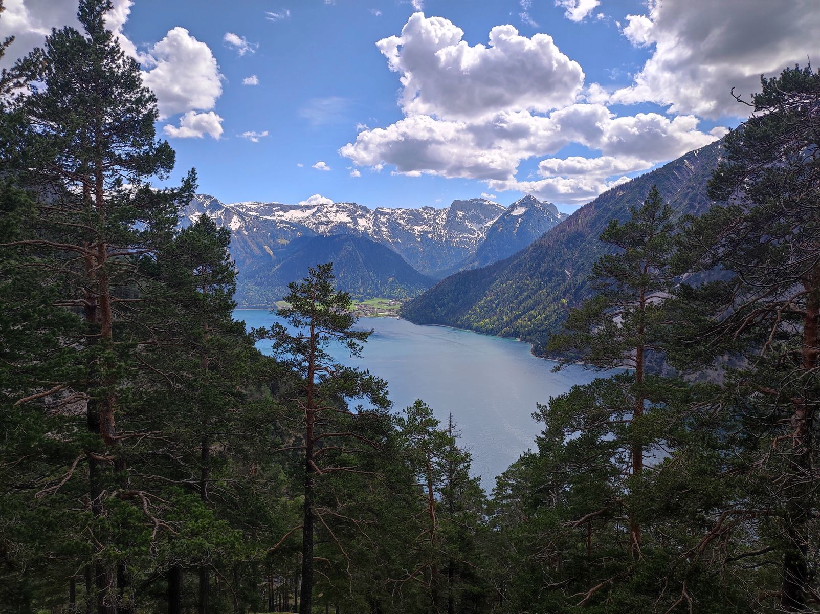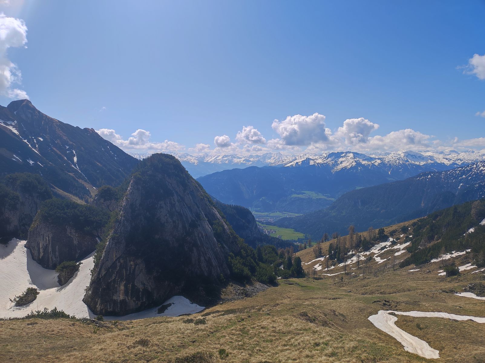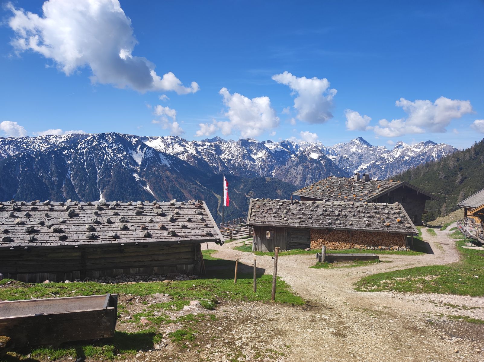 Gestern war ich bei wunderbaren äußeren Bedingungen im Rofan unterwegs. Mein Weg: Prälatenhäusl - Dalfaz-Alm - Klobenjoch - Dalfaz-Alm - Steineres Törl - Stuhlböcklkopf - Kotalmjoch - Kotalm-Hochleger (verfallen) - Mittelleger - Niederleger - Schwarzenau - am Ufer des Achensees zurück zum Ausgangspunkt. Die zentralen Teile der Route (Aufstieg Klobenjoch und die Kammüberschreitung der beiden anderen Gipfel) sind weder beschildert noch markiert und es gibt auch nicht immer eine erkennbare Trittspur. Die Orientierung ist dennoch bei guter Sicht einfach. Schnee ist kaum mehr ein Thema; allerdings liegt im Steilstück des Anstiegs von der Dalfaz-Alm zum Streichkopf (=Normalweg Hochiss) noch viel Schnee, der zudem sehr faul/sumpfig ist, weshalb ich auf den Streichkopf (eigentlich logischer Beginn der Kammüberschreitung) verzichtet habe und weglos über die fast schneefreien südseitigen Wiesen zum Stuhlböcklkopf aufgestiegen bin.