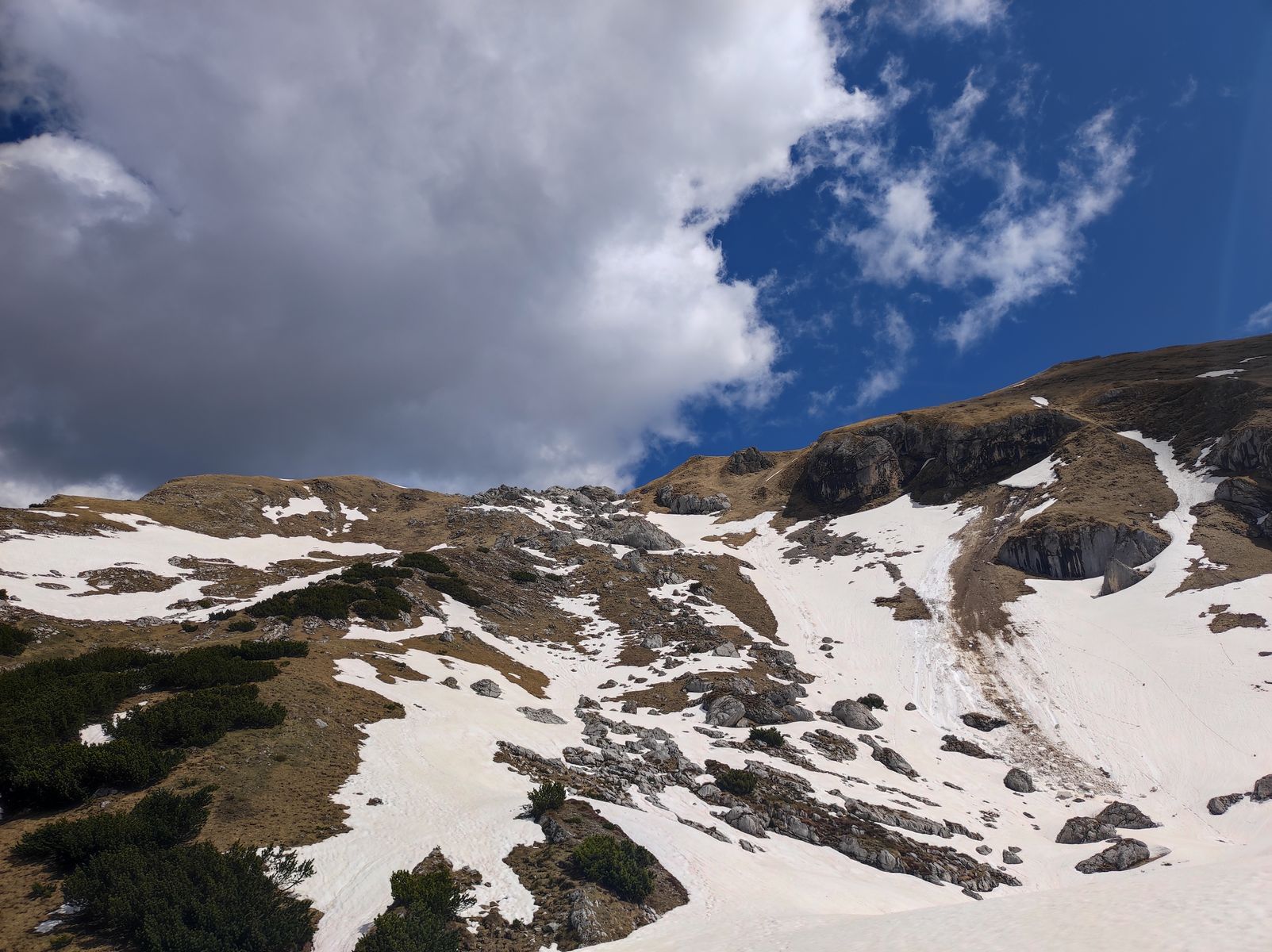 2: Der Aufstieg zum Klobenjoch ist fast schneefrei.
