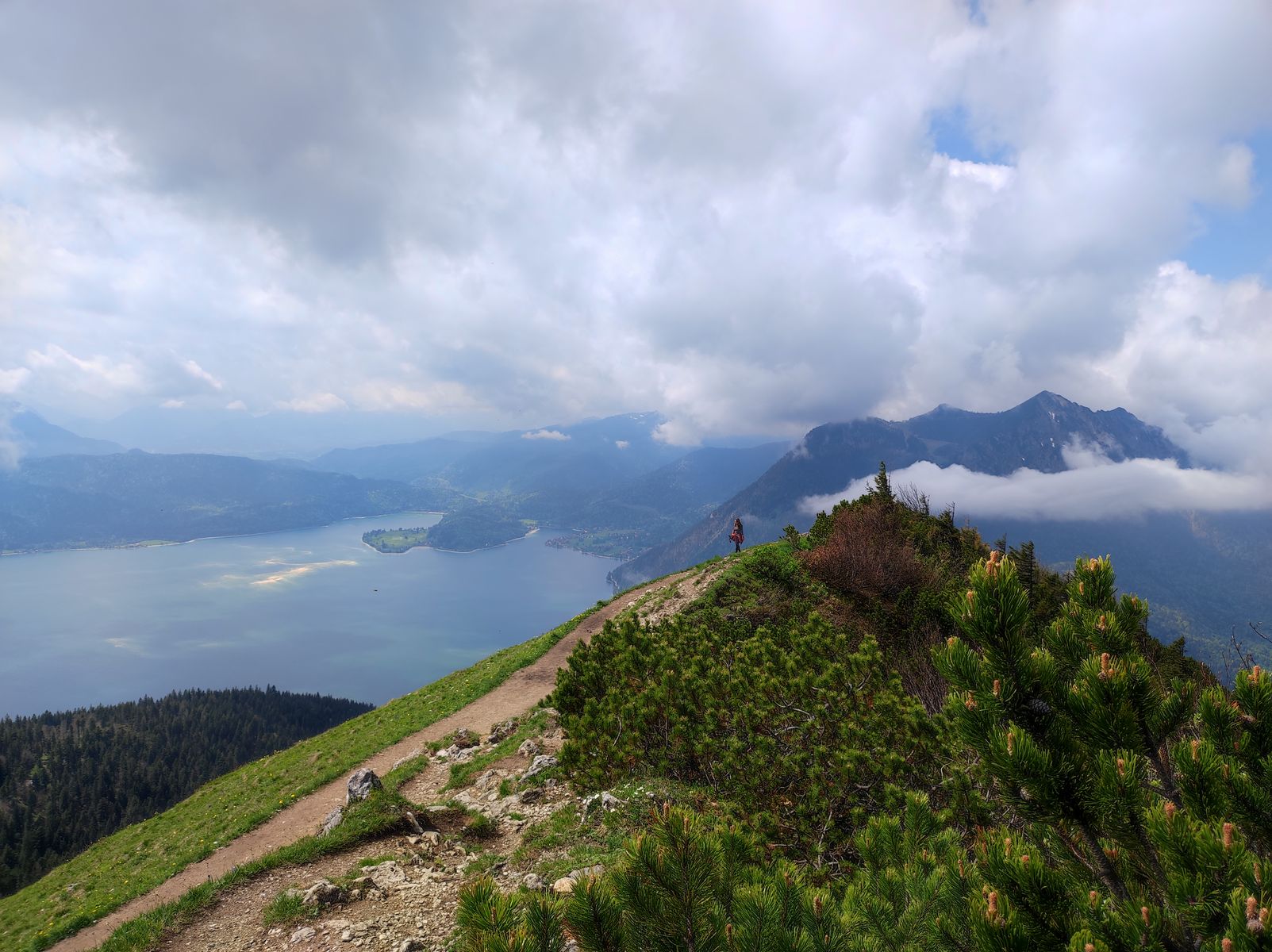 4: Blick vom Rabenkopf zum Kochelsee: Der Abstiegsweg geht genau in diese Richtung